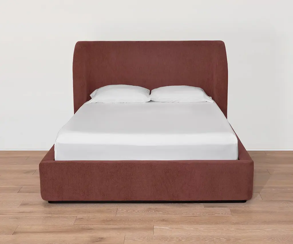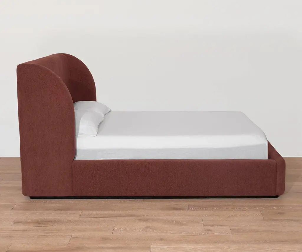 With its rich rust shade and elegant curves, the Ardis Queen Bed is a statement piece worthy of any design-forward decor setting. Fully upholstered in soft, velvety fabric, it strikes a perfect balance between plush comfort and a modern aesthetic.