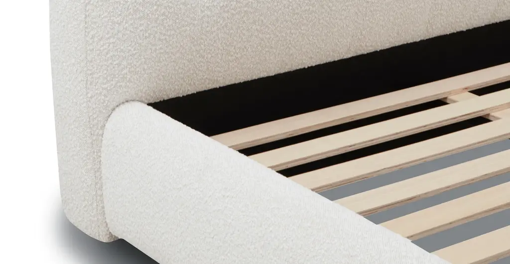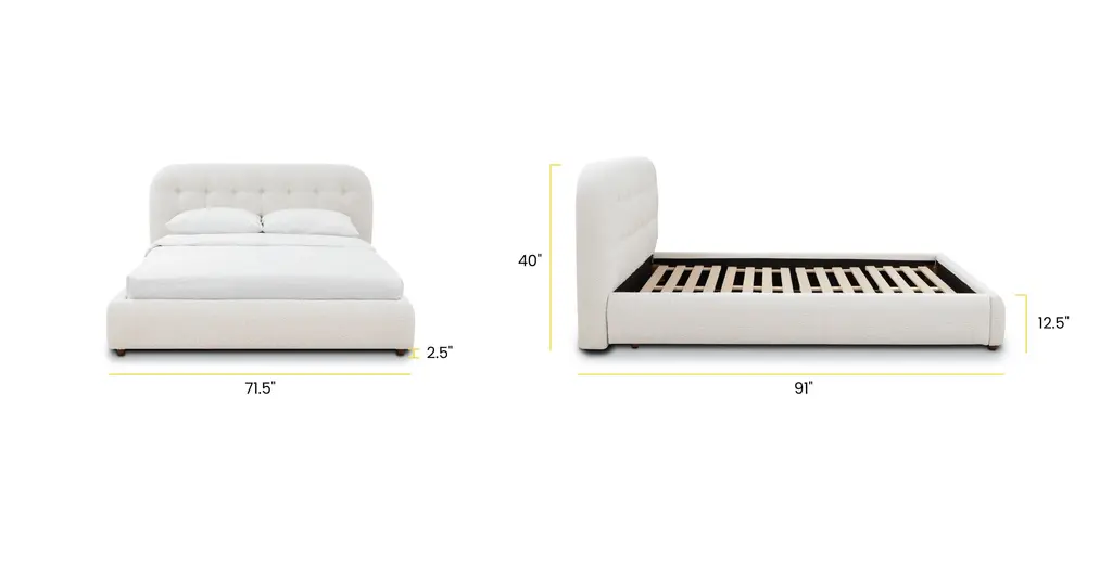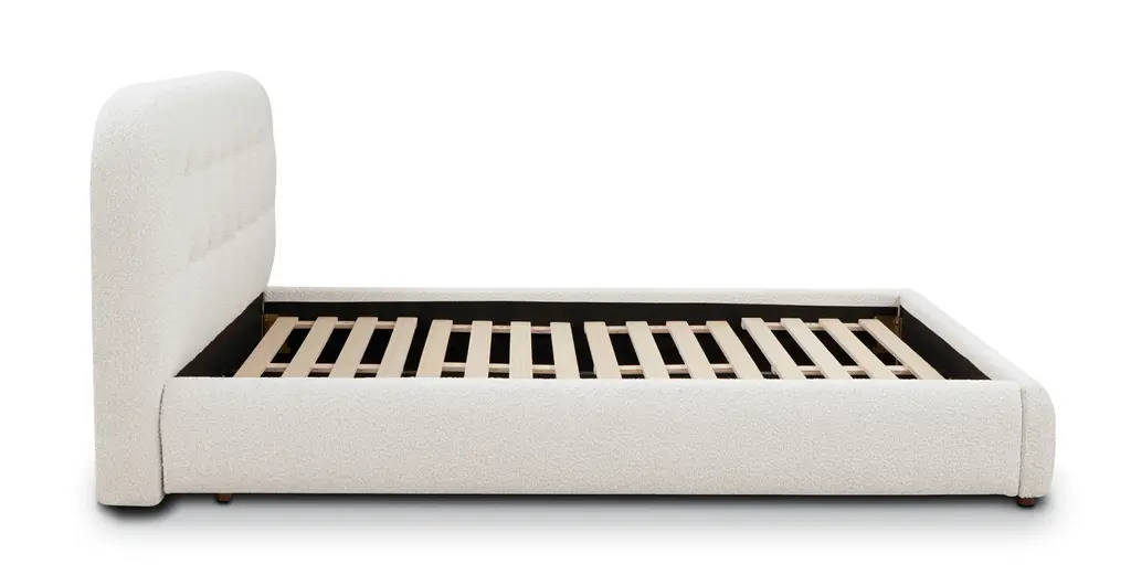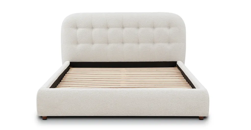 Settle into elegance with a button-tufted headboard that curves gracefully, creating a cozy nook for restful nights. Upholstered with plush high-density foam and supported by solid round walnut stained legs, this bed turns every sleep into a luxurious escape. It's not just for sleeping—it's a statement of style, inviting you to lounge lavishly and wake up wonderfully.
