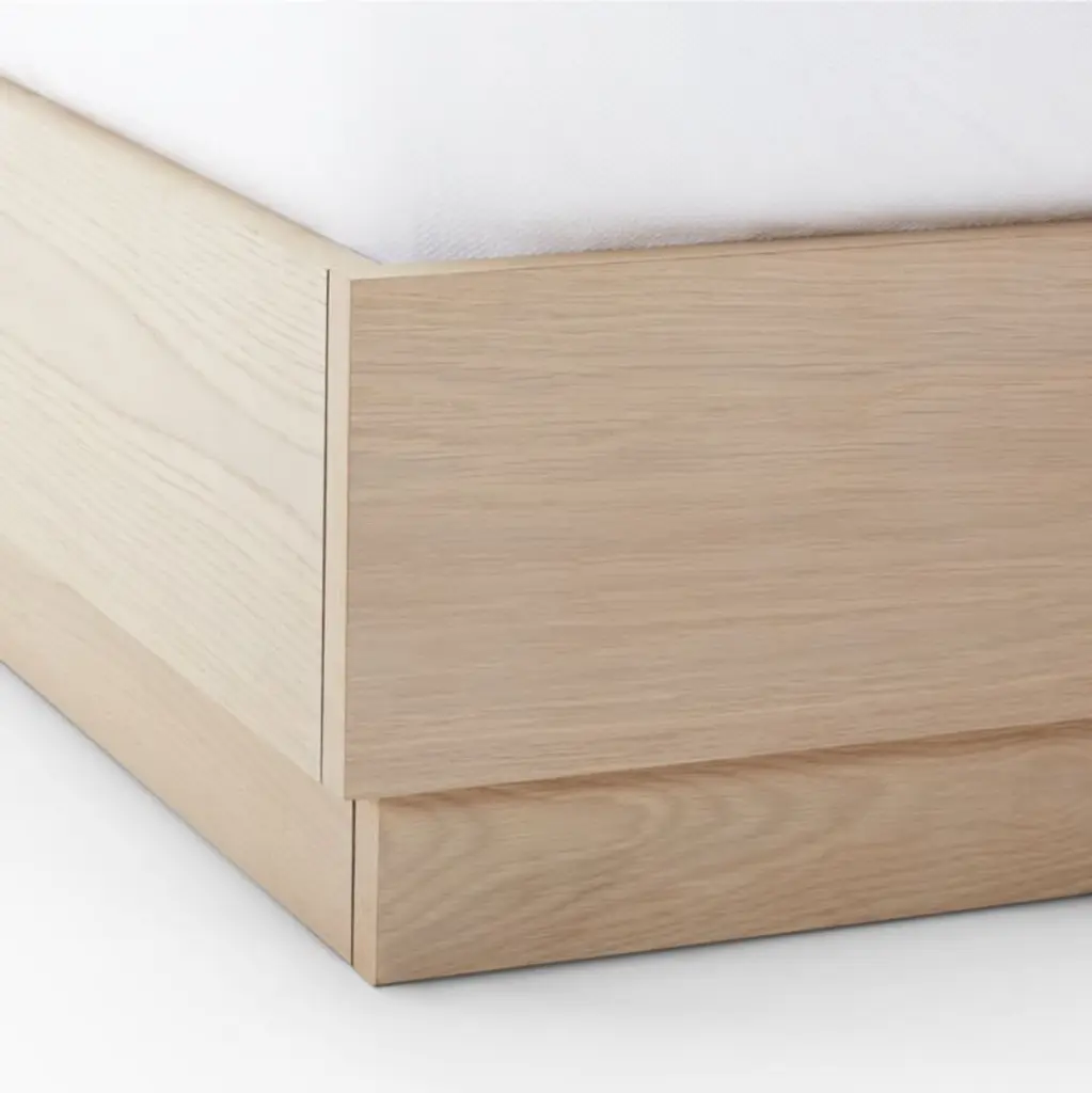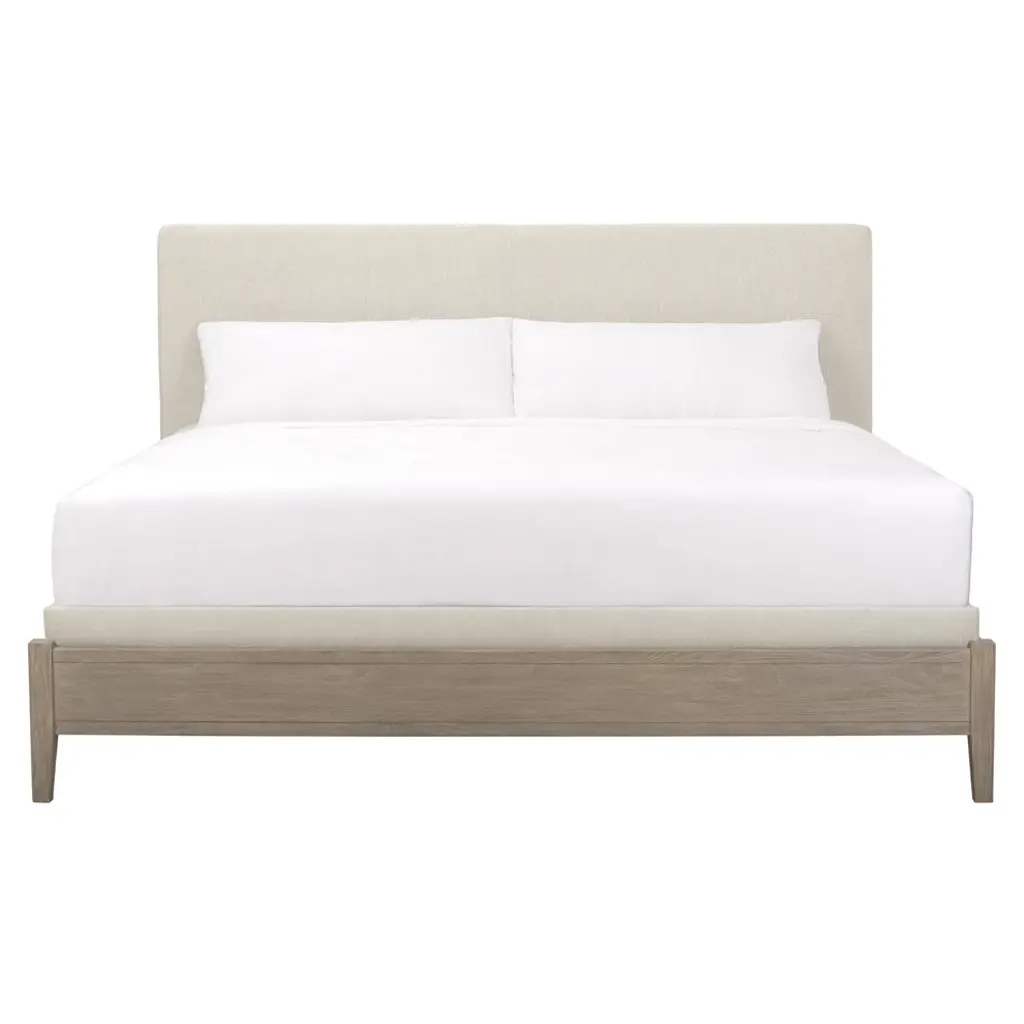 Arvada 54" Camel Brown Upholstered King Headboard With Batten White Oak Bed Base