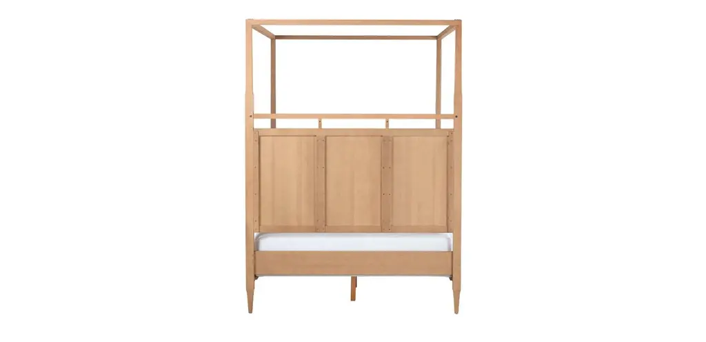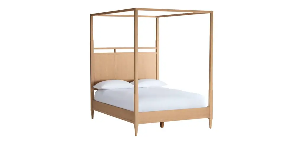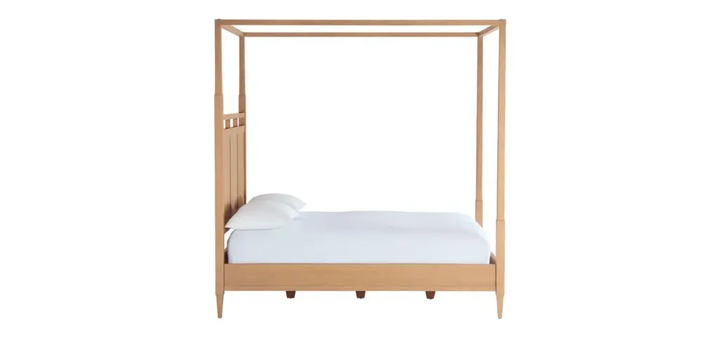Our Arya poster bed reimagines the quintessential pencil-post bed, giving it geometric angles and creating a clean, square open canopy while ensuring that its textured wood grain shines through. It's Shaker-Scandinavian fusion at its finest—a look that can lean classic or modern depending on your finish choice.