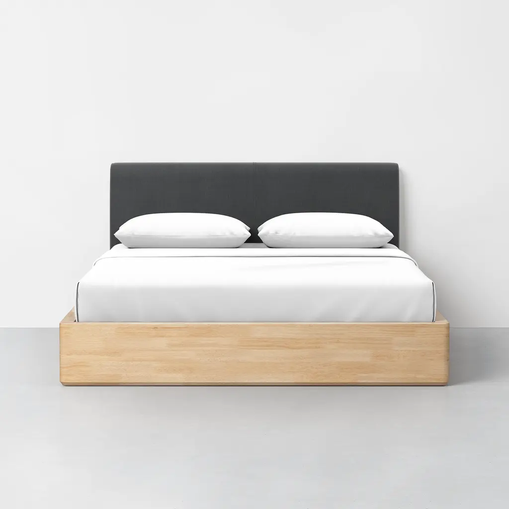 Asher's seamless joinery and beautiful walnut or ash veneer are inspired by the design of traditional teak Danish mid-century masterpieces. Carefully crafted and delicately sculpted, the frame is beveled with 45-degree edges that fall towards the center, encapsulating the security of the headboard. At the base, which sits wide above slim tapered solid wood legs, the complementary edges gently slope outwards, gradually bringing you down into deeper, dramatic slumber. The Asher Bed is available in King or Queen and is part of a five-piece set that completes the classic mid-century modern dream.