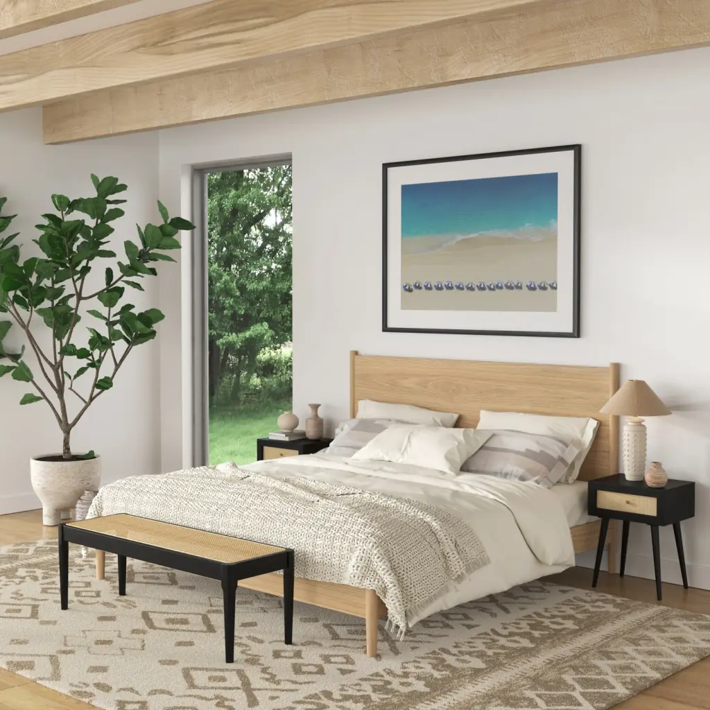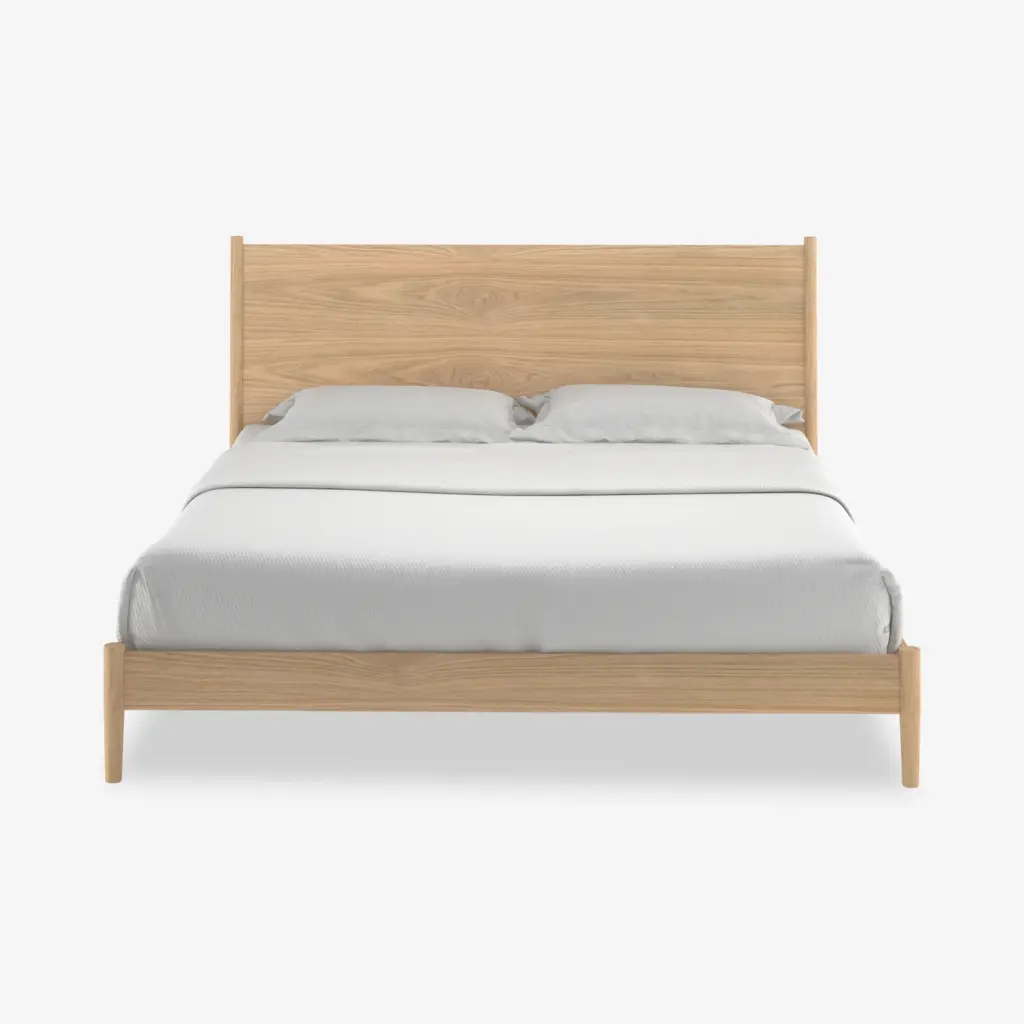 Sure to become the focal point of your bedroom, the Avalon bed features a clean, streamlined design with a rich and inviting look. Crafted on a solid wood frame with an oak veneer, this bed offers the perfect silhouette to your room. The quiet neutral tones of its white wash bring a calming effect, while also allowing you to make it your own with any pop of color.
