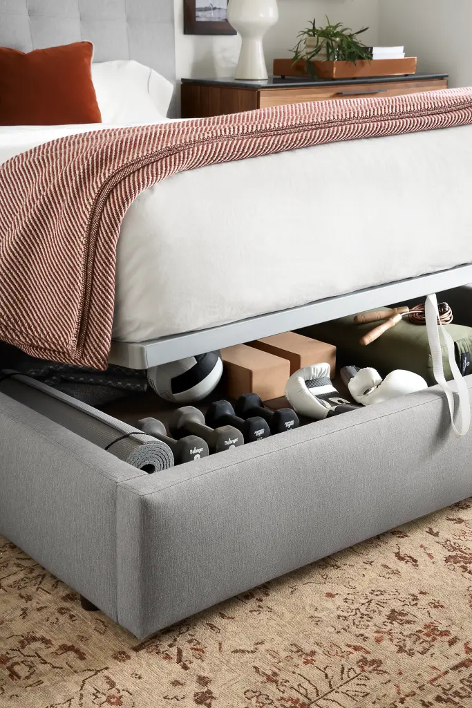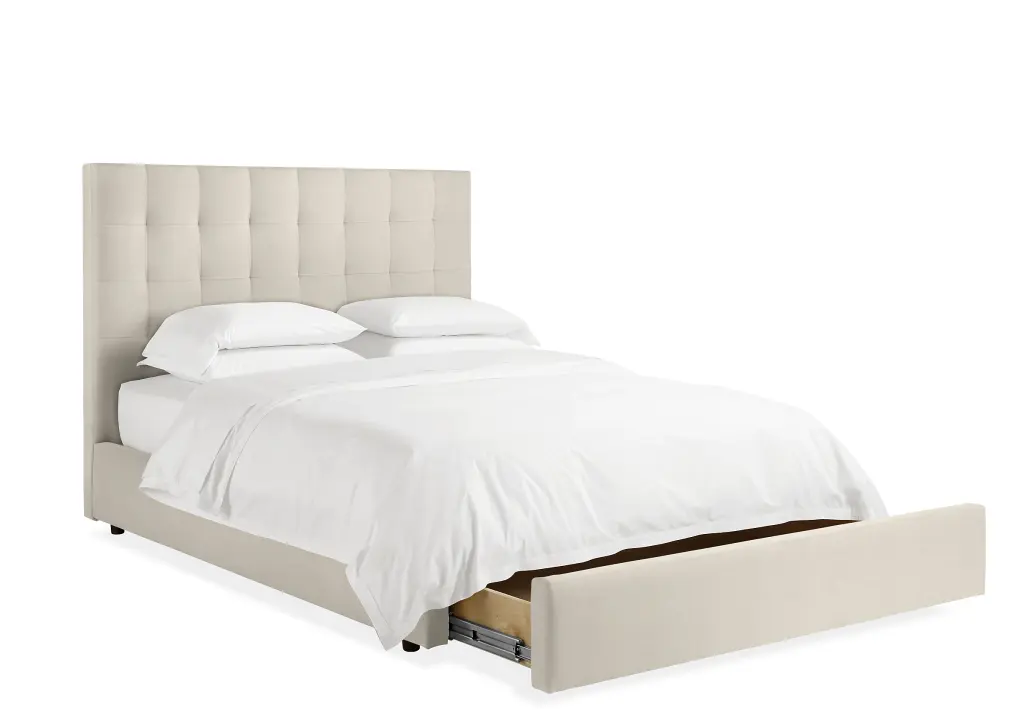 Soft upholstery embellished with tufting puts a modern twist on a classic style. Featuring quality craftsmanship, the Avery storage bed adds texture and color to your room, plus plenty of hidden storage with easy lift-up functionality or a hidden drawer that pulls out from the foot of the bed.