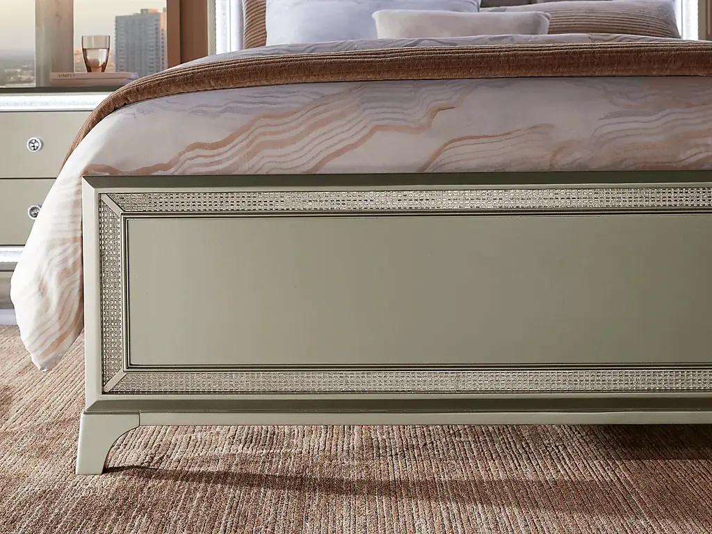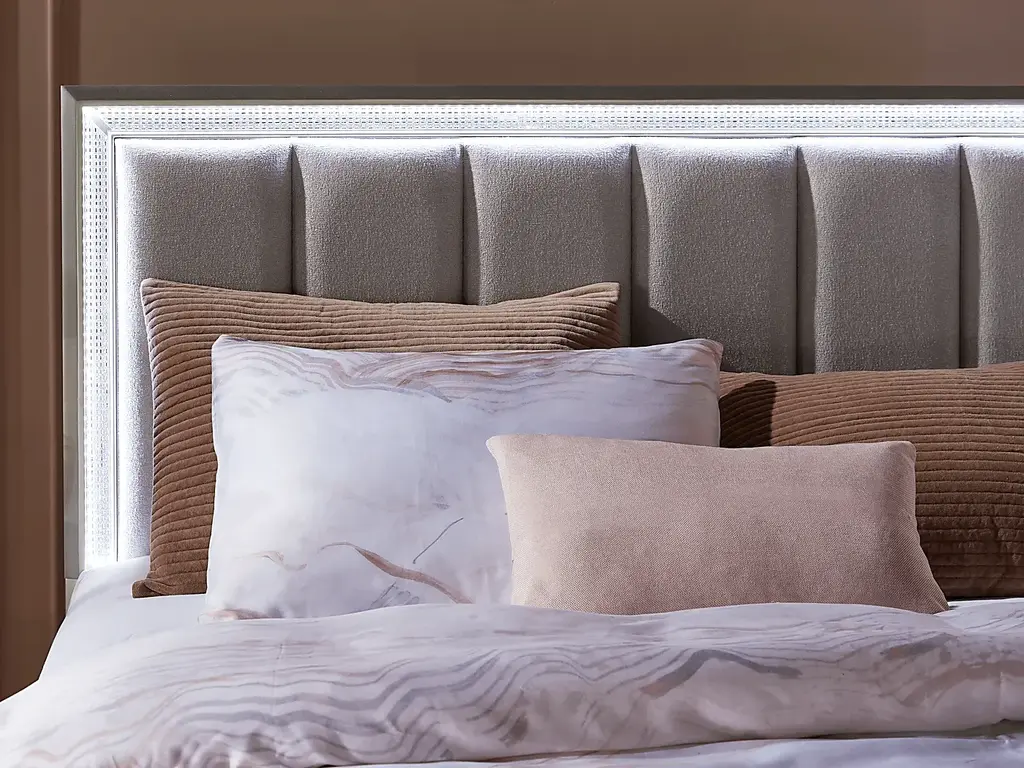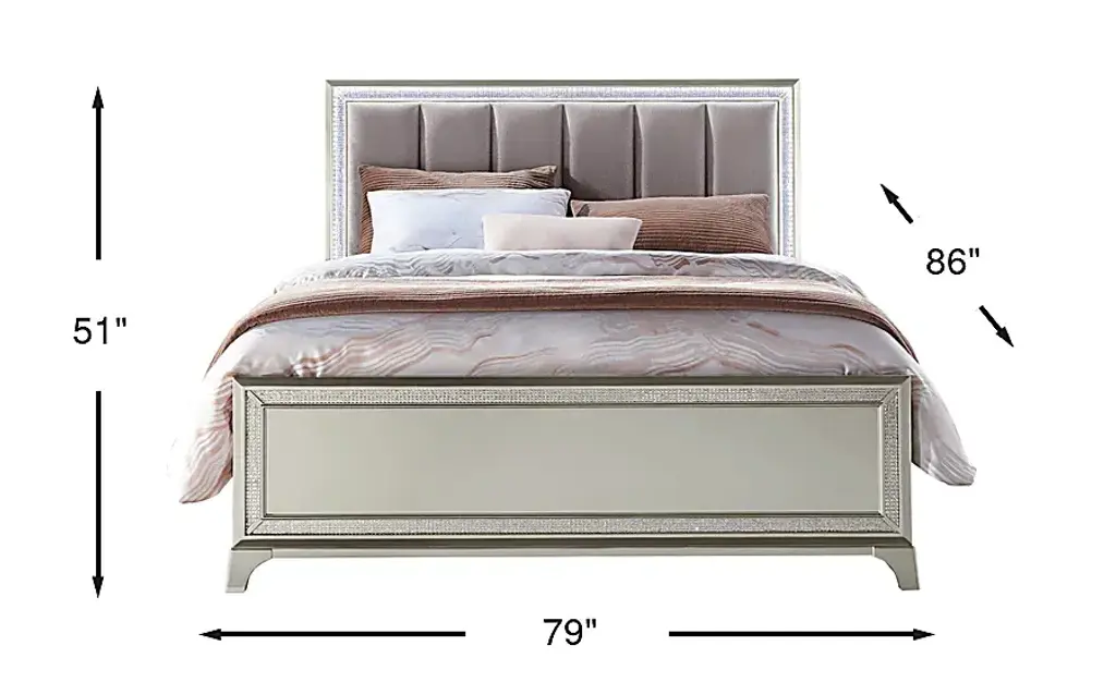 Greet the day with a splash of glamor when the Avery bedroom's dazzling design puts the final lavish touch on your rest and recharge room. Contemporary in style, this bed features a shimmering frame with crystals and LED lights highlighting the upholstered headboard in a stunning display of light and style. Mattress and foundation (if required) sold separately. Bed shown is queen size.
