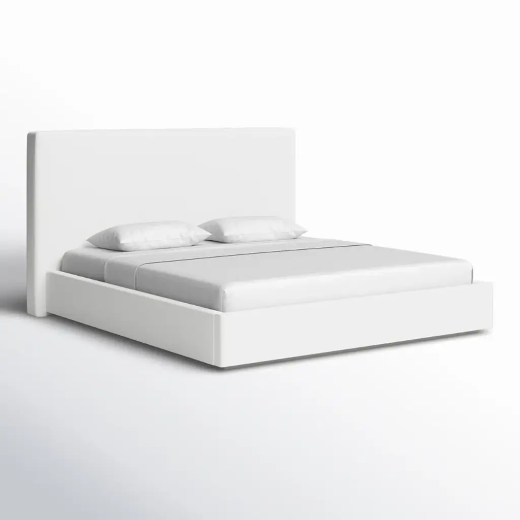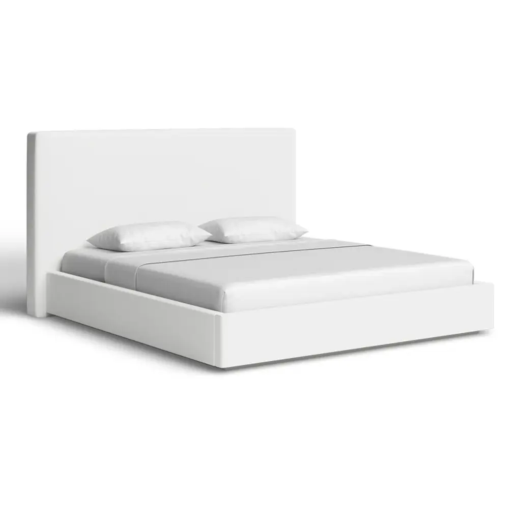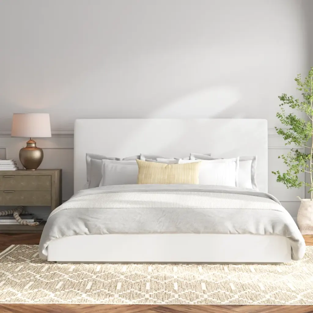 More than just a dream. This upholstered bed showcases clean lines and a modern, low-profile design we love. The plush headboard offers support for reading or watching TV before bed, and the crisp white hue serves as the perfect canvas for your decor and bedding. Best of all, it comes with a slat kit, so there's no need for a box spring.