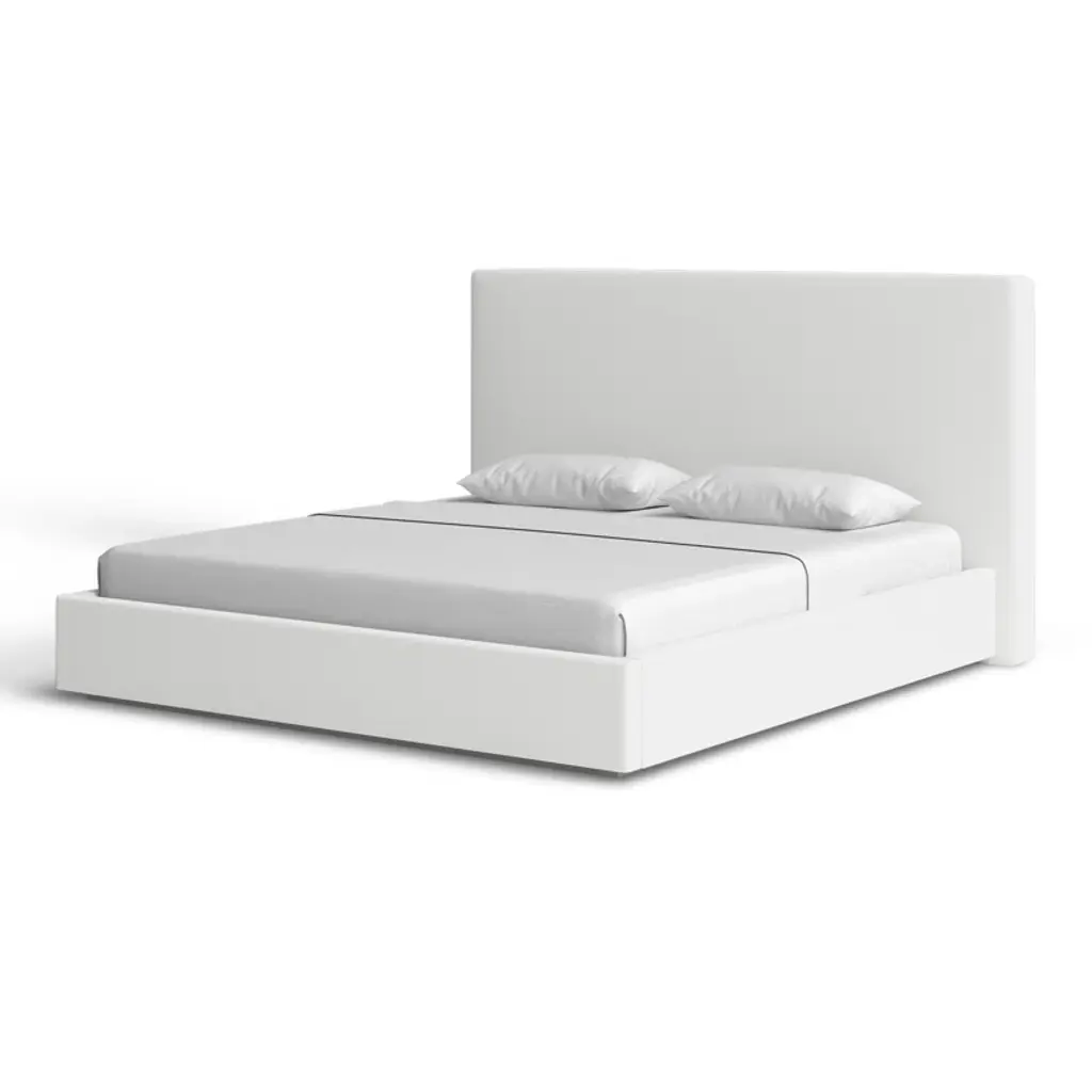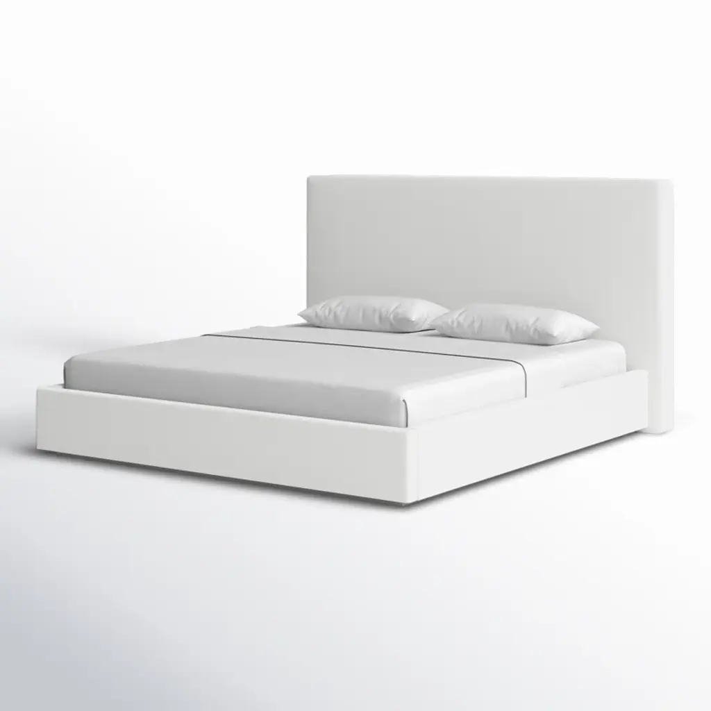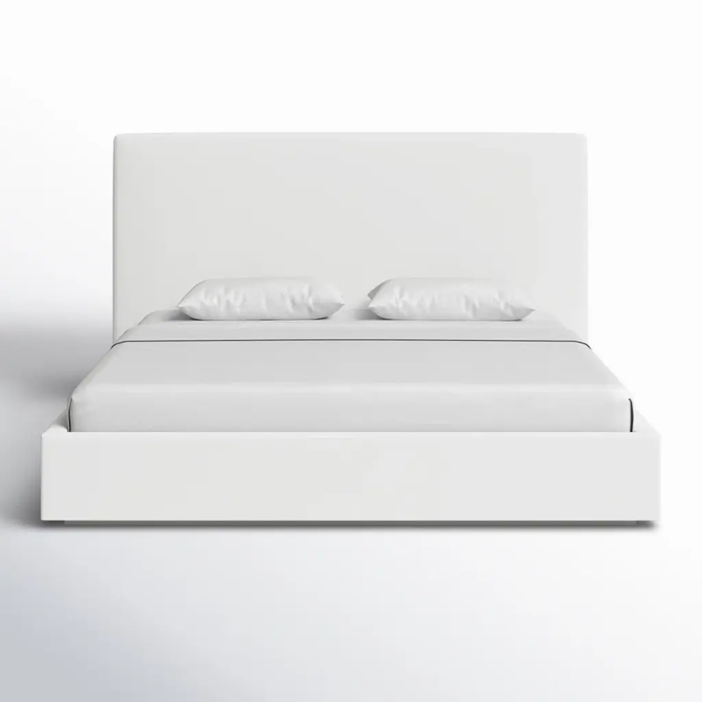 More than just a dream. This upholstered bed showcases clean lines and a modern, low-profile design we love. The plush headboard offers support for reading or watching TV before bed, and the crisp white hue serves as the perfect canvas for your decor and bedding. Best of all, it comes with a slat kit, so there's no need for a box spring.