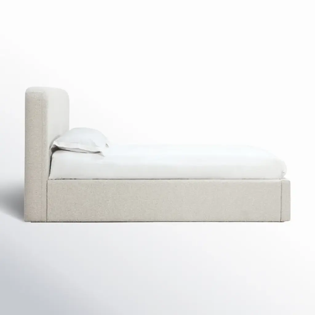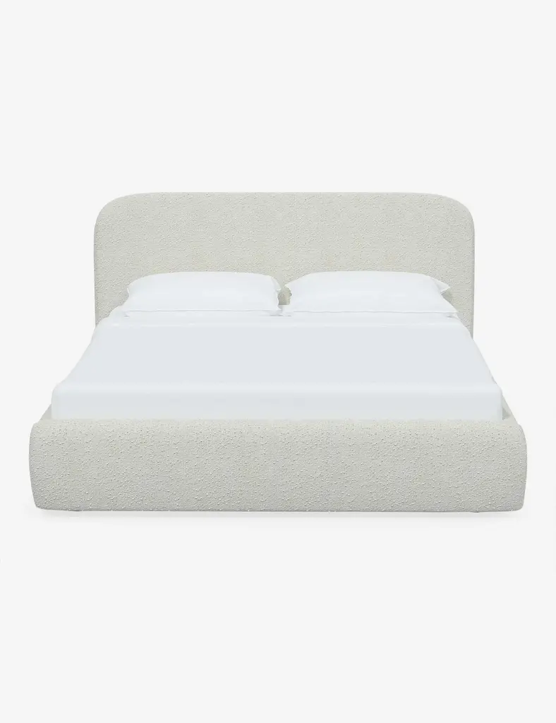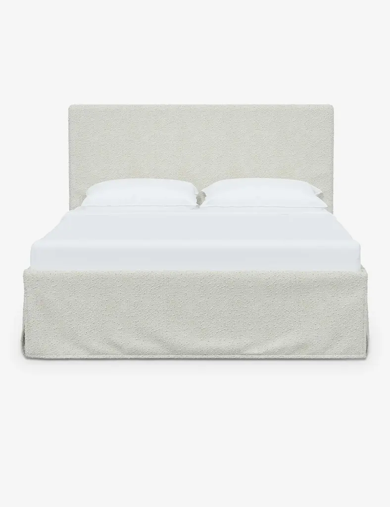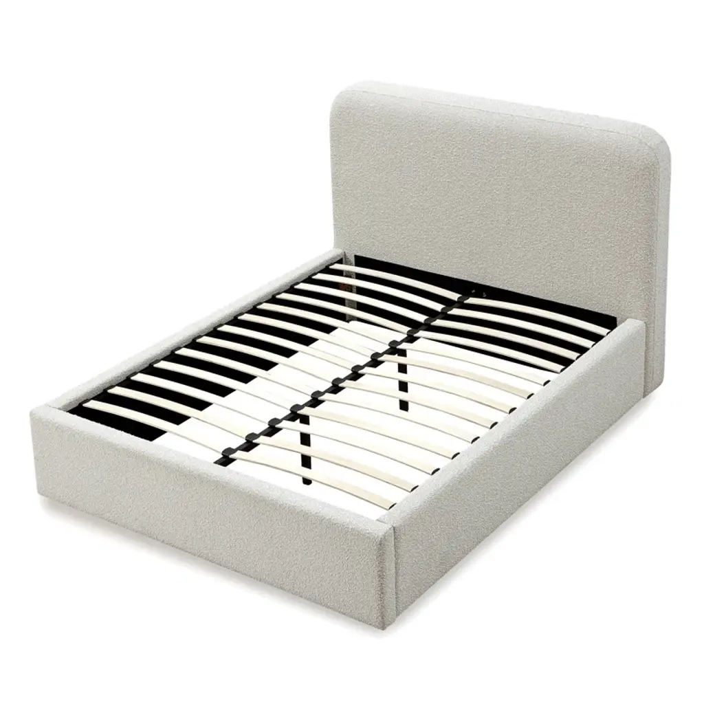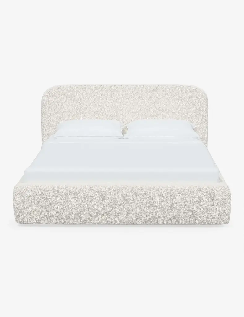 Dreamy nights await. Our upholstered bed is designed with a sturdy wooden frame that’s wrapped in a cozy bouclé fabric. The off-white hue of the upholstery adds a bit of warmth to the look, while the foam-padded, rectangular headboard offers support for those late-night reads. Bonus: No box spring is needed, thanks to the included slat kit. Just add your preferred mattress and crisp new linens.