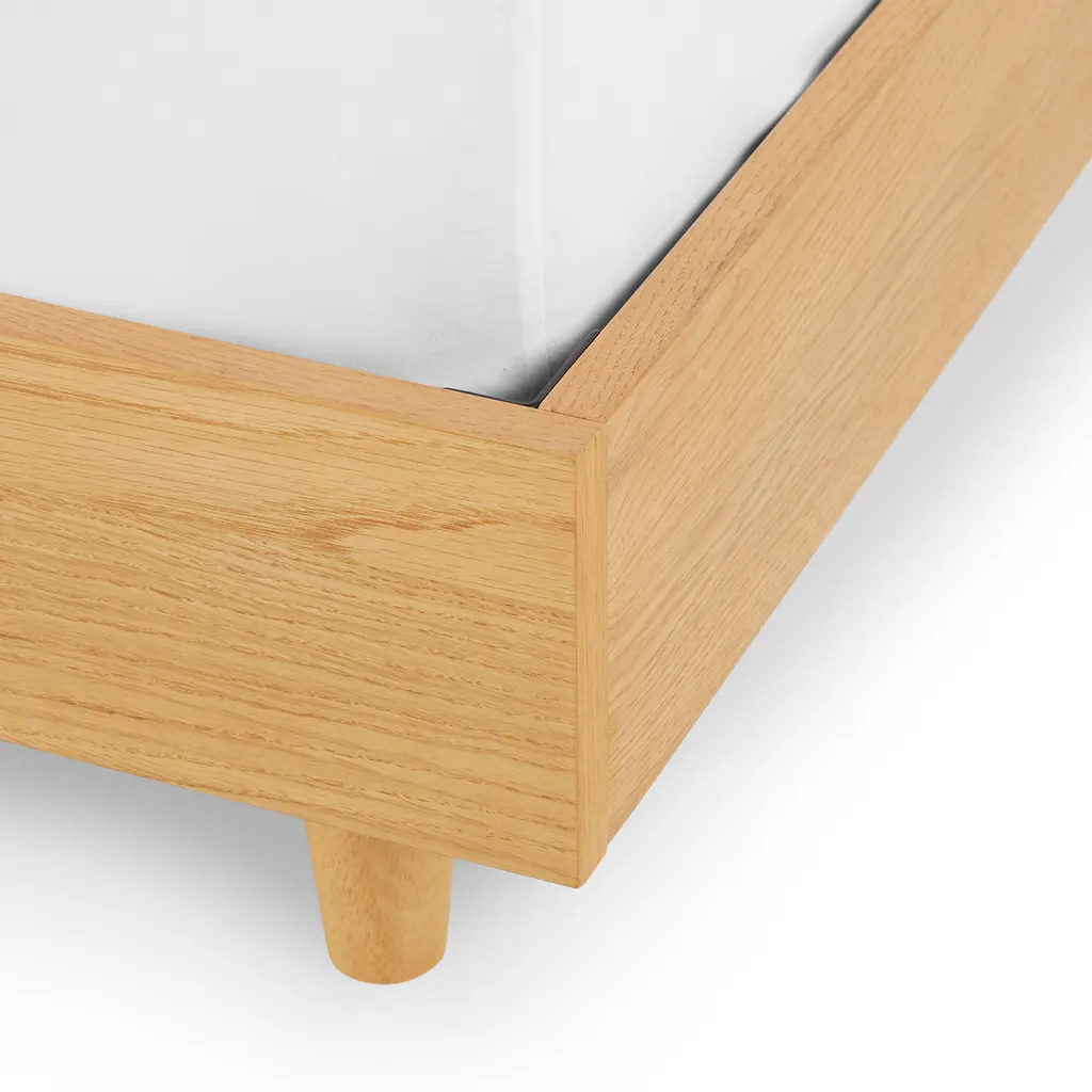 Modern and dreamlike, the Basi floating bed lulls the sleepy with its sleek, minimalist style and super-solid construction. Using the highest quality veneer, solid-plywood support slats, and solid wood legs, the Basi will support your dreams for years to come.