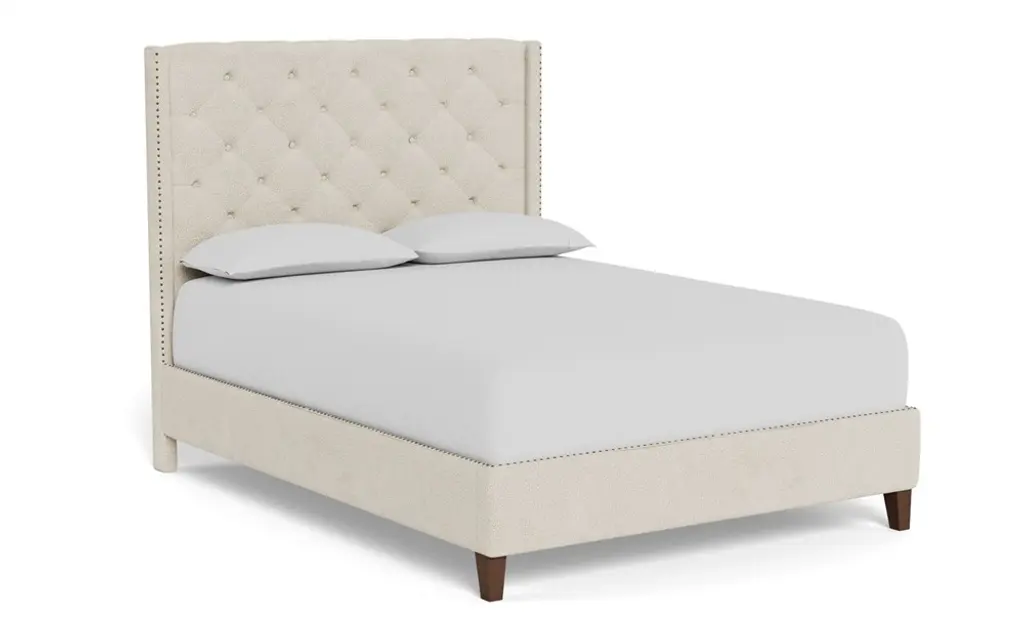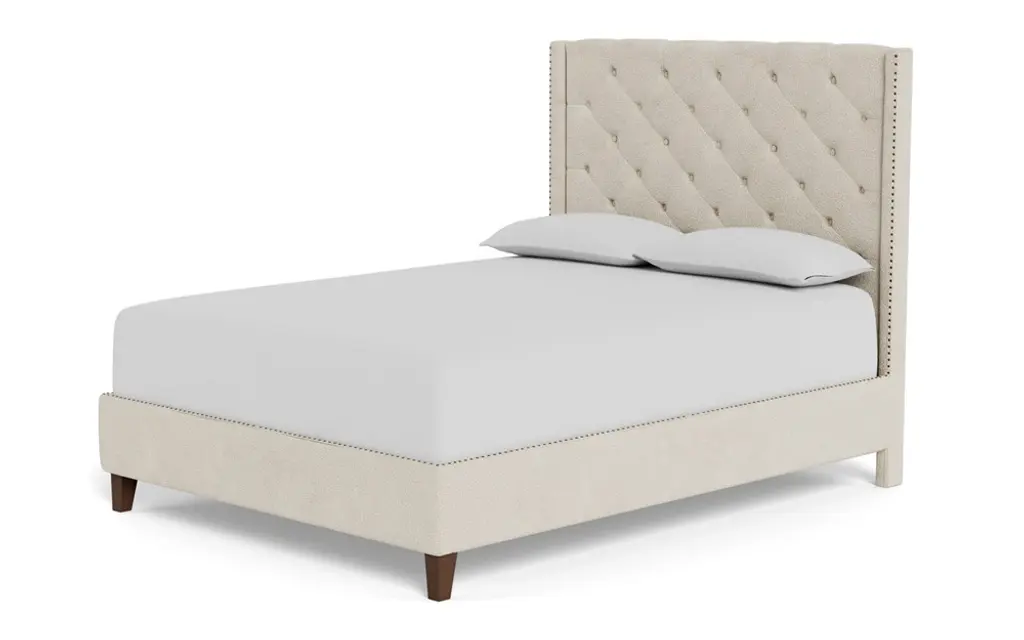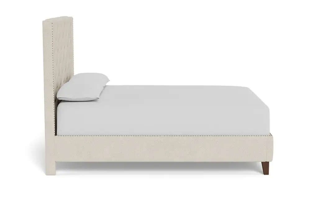 Meet our king Beckett bed. A clean-lined silhouette with traditional details offers a versatile design that’s easy to style in any bedroom. Tapered legs support the fully upholstered frame, which is beautifully accented with nailhead trim and classic button tufting. A good night’s sleep never looked so chic.