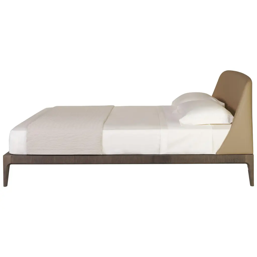 A clean and sophisticated design of timeless character, this bed will exquisitely complement both modern and classic interiors. Handmade of ash wood, it features a comfortable headrest softly padded and upholstered with leather. Designed by Libero Rutilo. Mattress is not included, please consult the Concierge for further details.