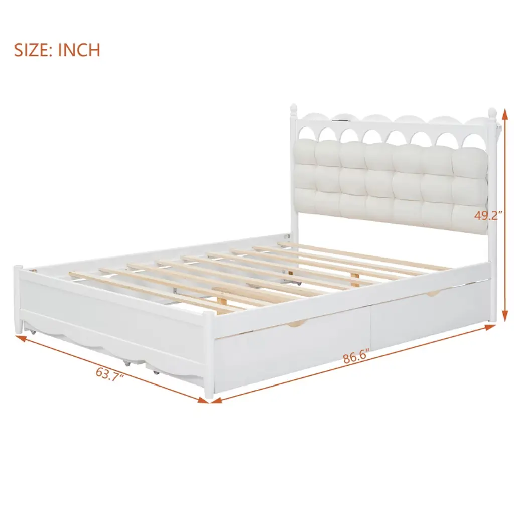 Bellemave Queen Bed Frame With Headboard & Usb Ports Frame With 2 Drawers, No Box Spring Needed, No Noise,wood,white