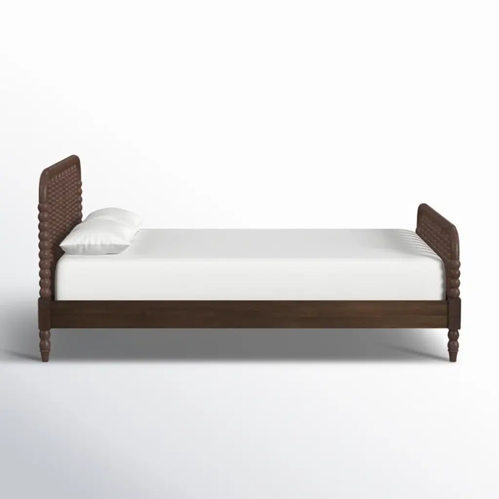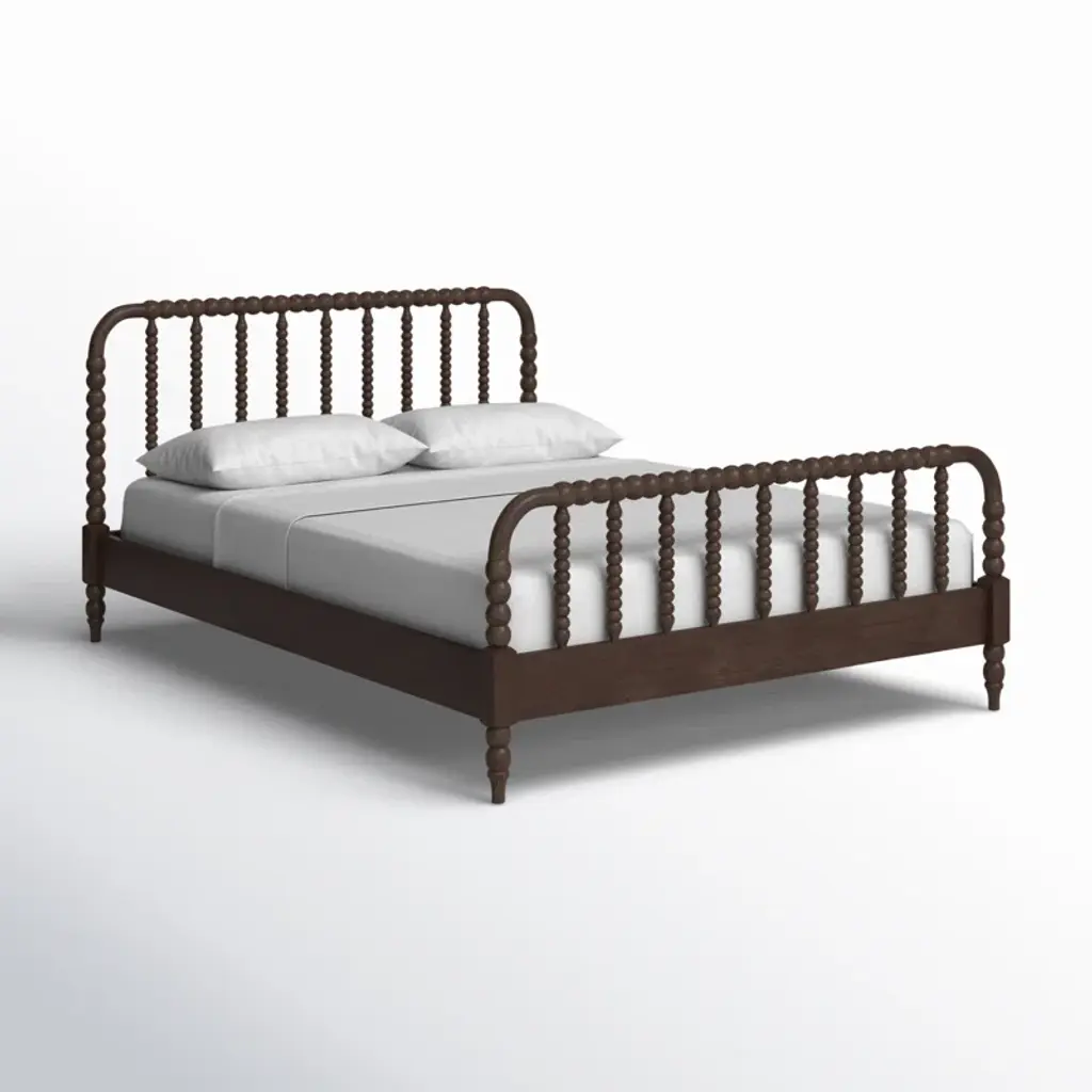 Eye-catching and vintage-inspired, our spindle bed will anchor your bedroom in traditional style. The wooden frame features turned bobbin accents and a slatted headboard and footboard that make this bed even more open and inviting. Top with the mattress of your choice (sold separately) and make it up with crisp linens and maybe an antique quilt to complete the look.