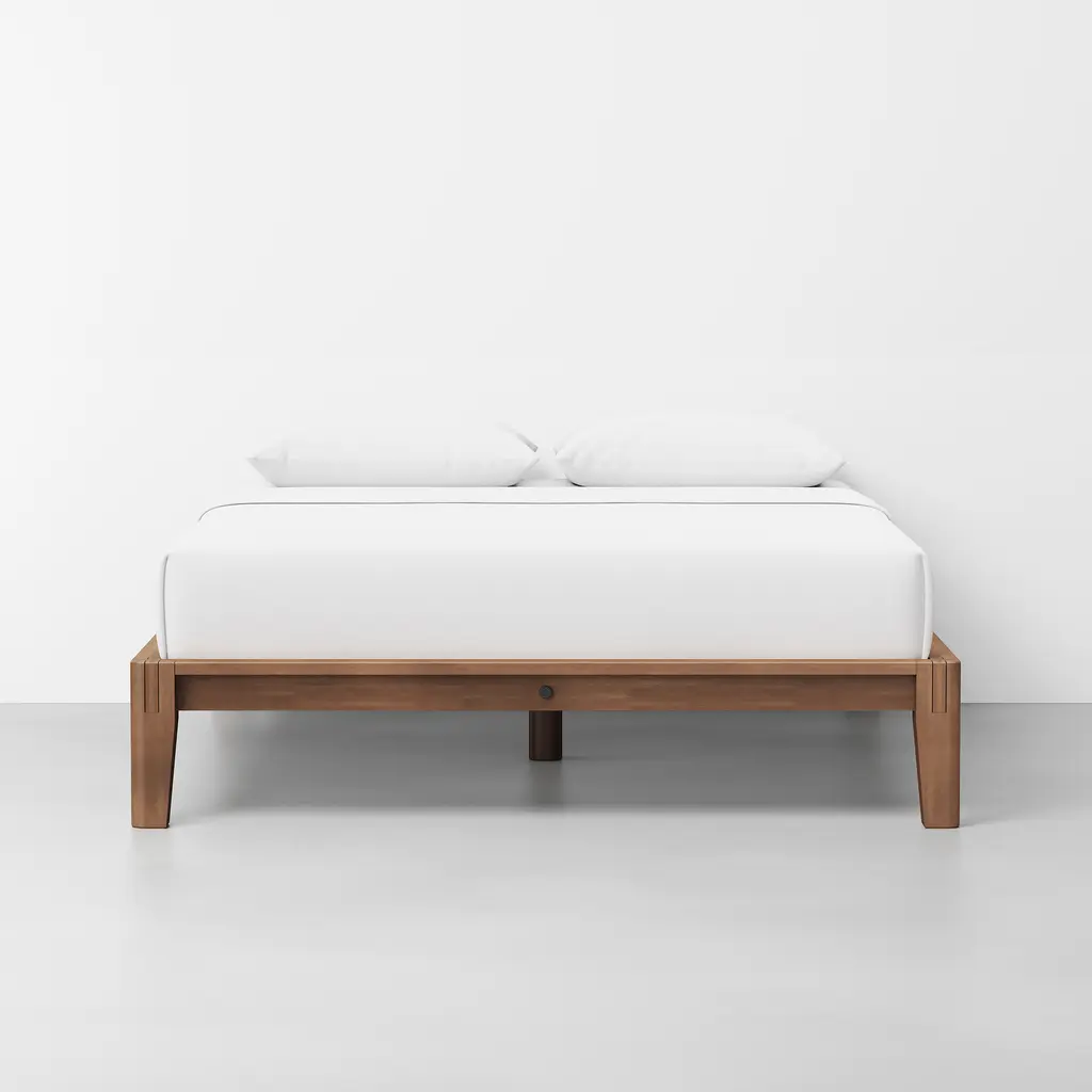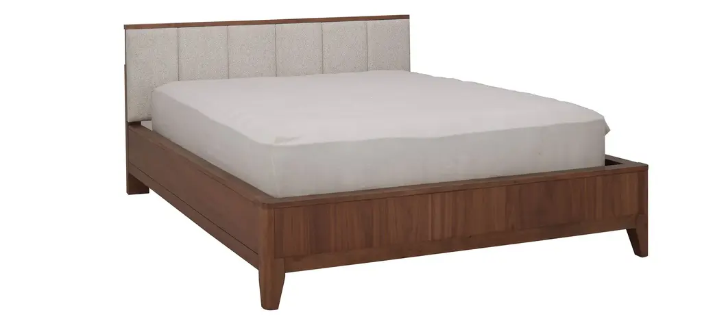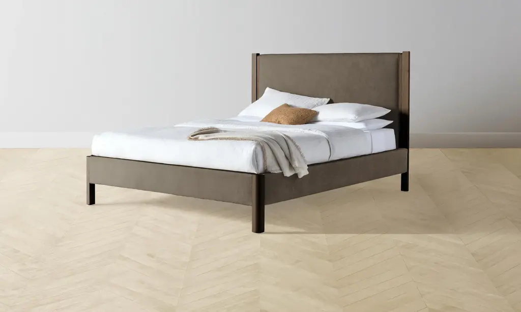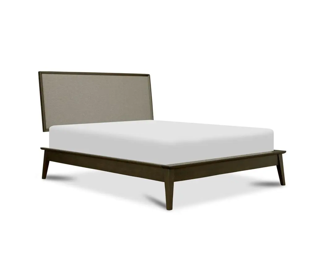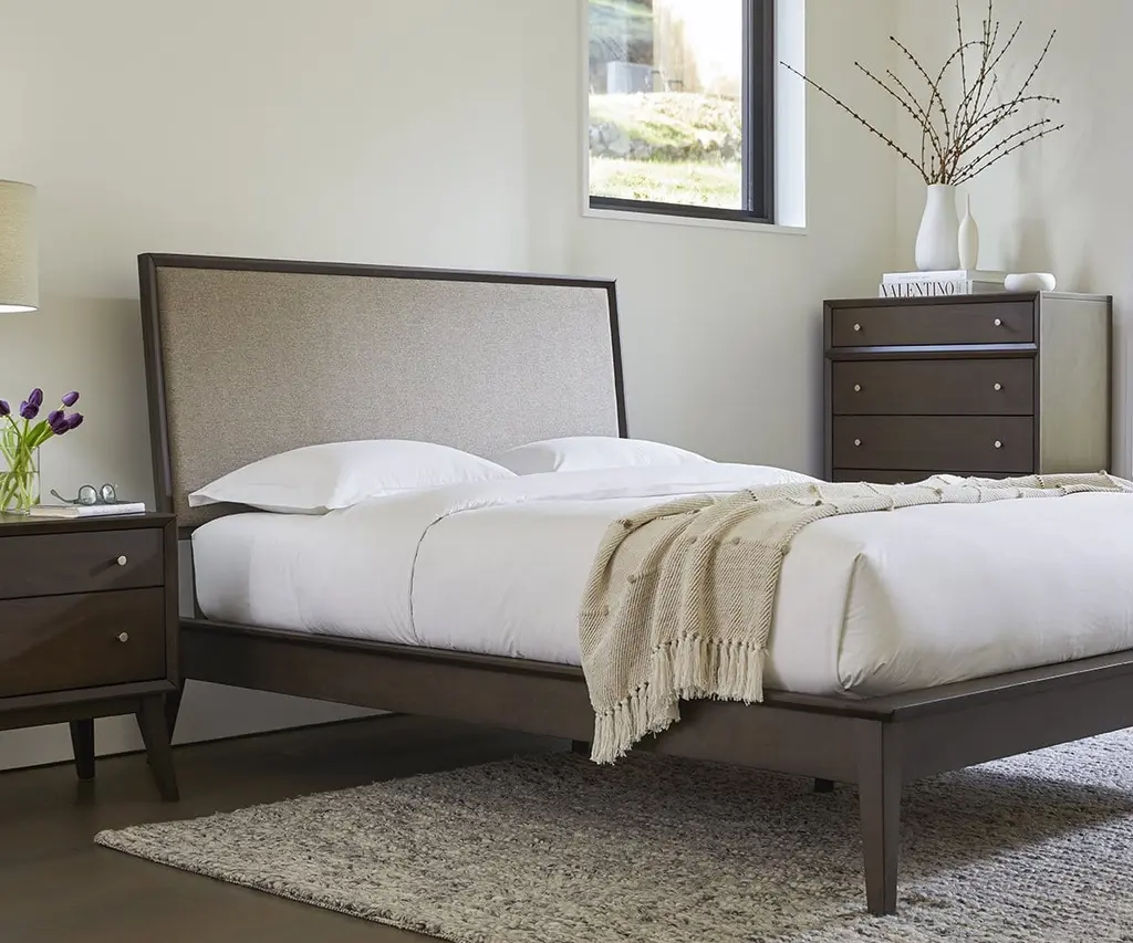 Start your bedroom redesign with a striking contemporary bedroom set. The frame of the Bennett Bed is crafted from solid beech, and a wide upholstered headboard gives you plenty of room to recline and relax. The combination of smoky, dark-stained color of the beech wood and textured upholstery infuses your space with a