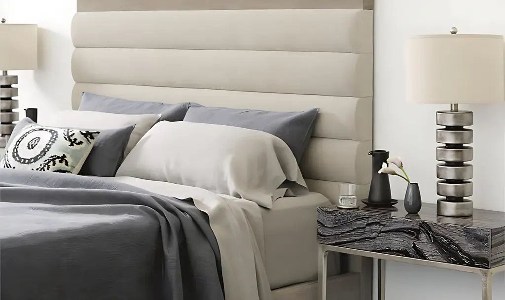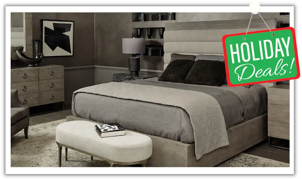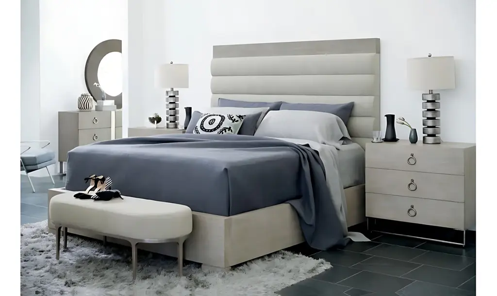 Bernhardt Linea Gray Channel Tufted Wood Bed