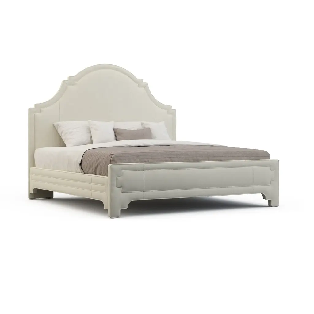 This bed has a beautiful headboard featuring a clover design. he sommier is upholstered in econubuck with a metal golden finished base and enriched by vertical stitchings on the front. This bed is for a 180 x 200cm mattress. Bed slats, mattress and cushions are not included. Please ask Concierge for details.
