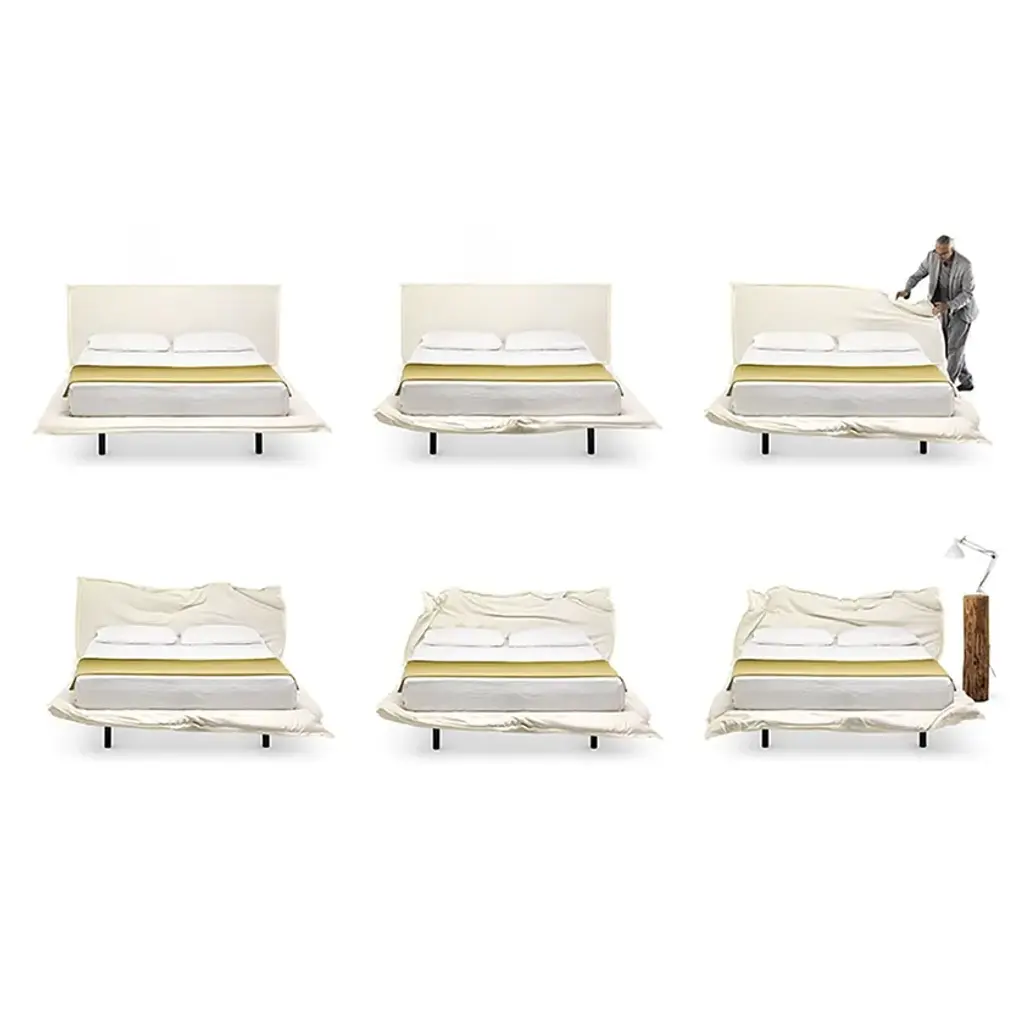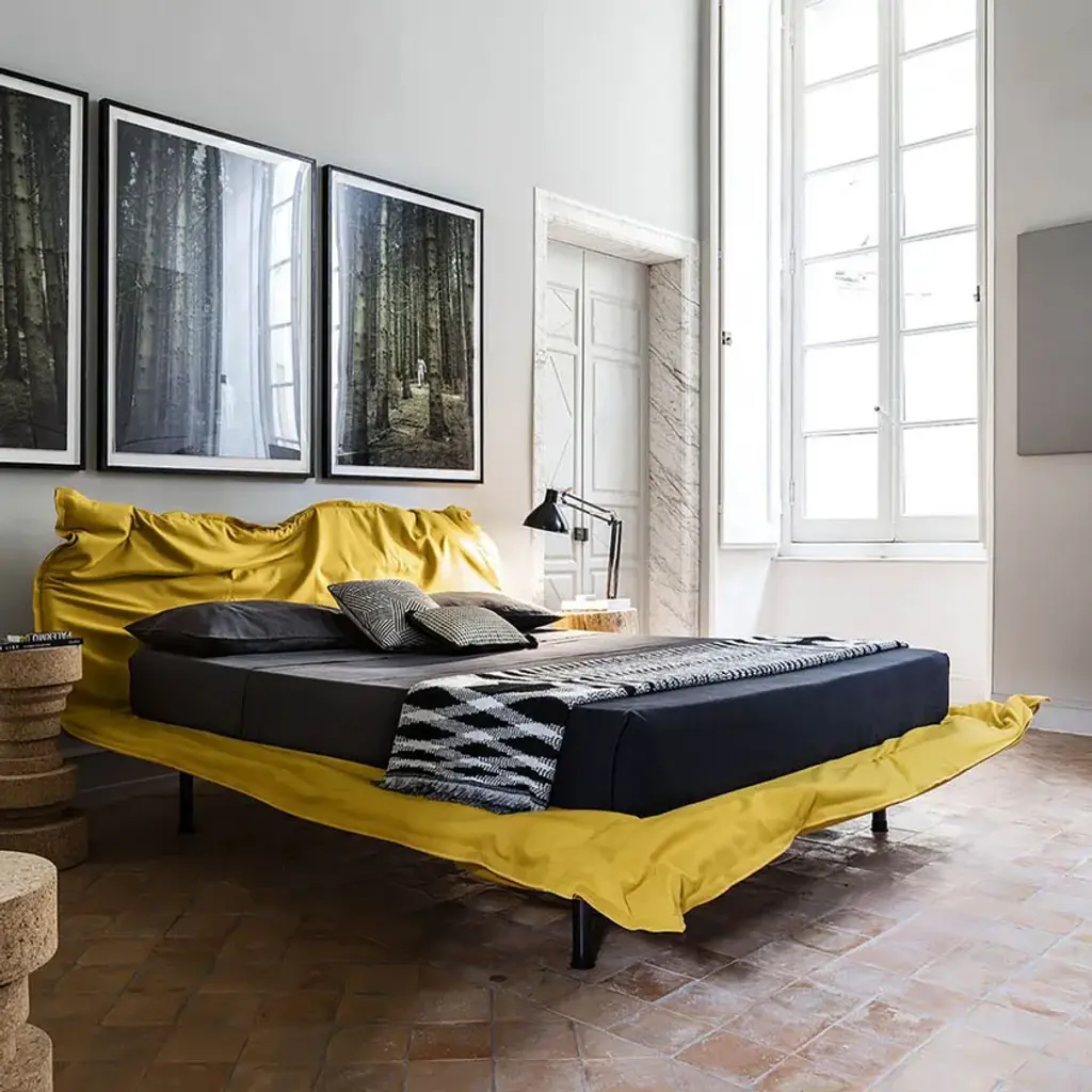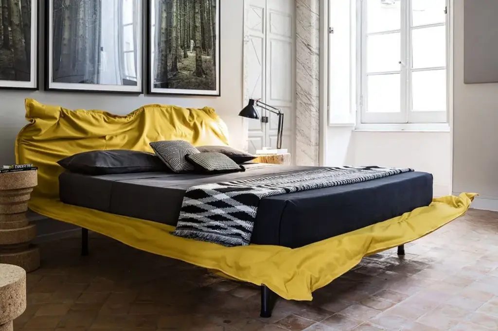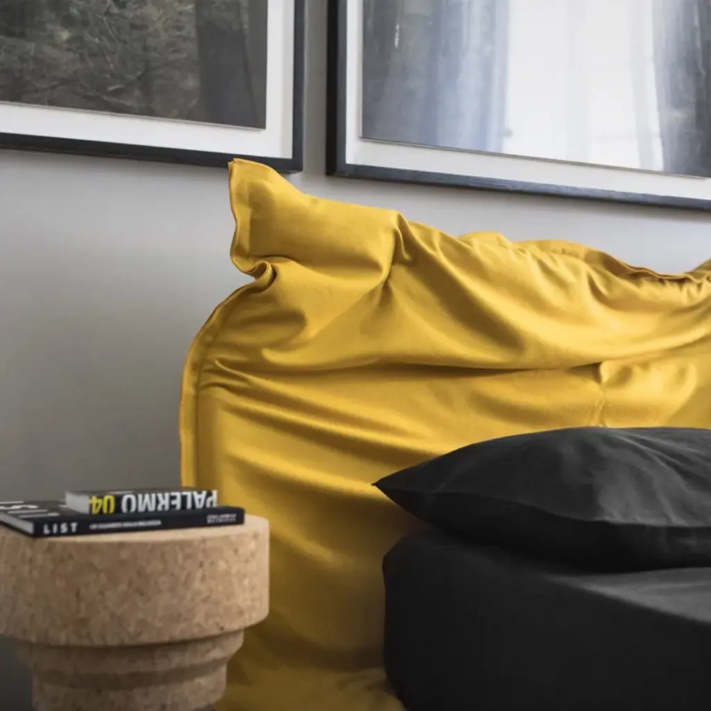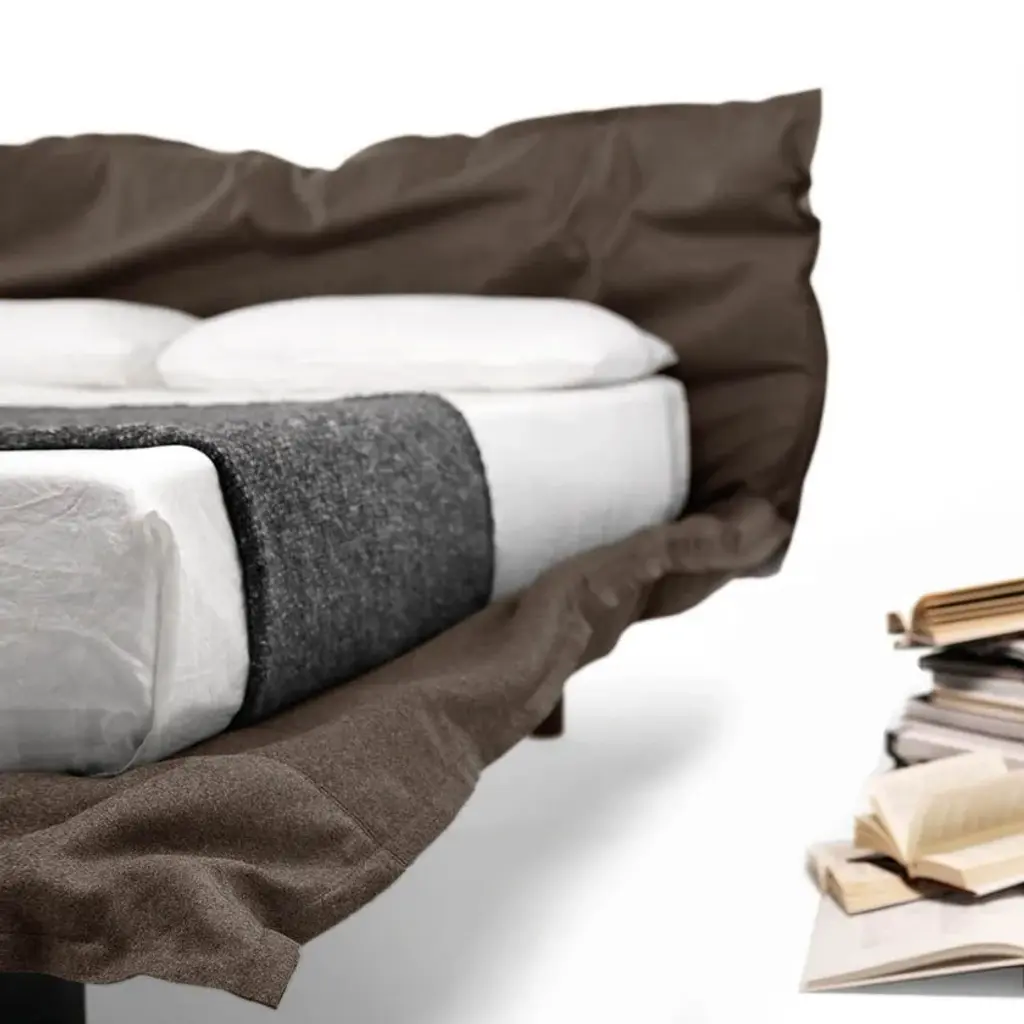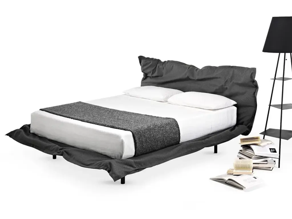 Big Hug is a double upholstered bed that can be shaped as desired, featuring a removable cover and complete with a beechwood slatted base in either 160x200 cm or 180x200 cm size. The 25 cm high legs are available in anthracite finish. Please specify the chosen size and fabric in the order. Mattress not included. Linen fabric (L) is not available for this item.