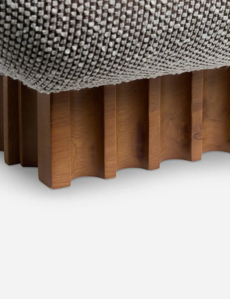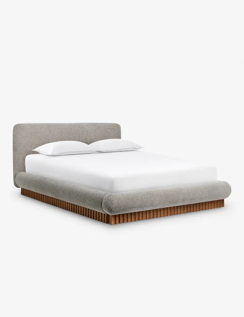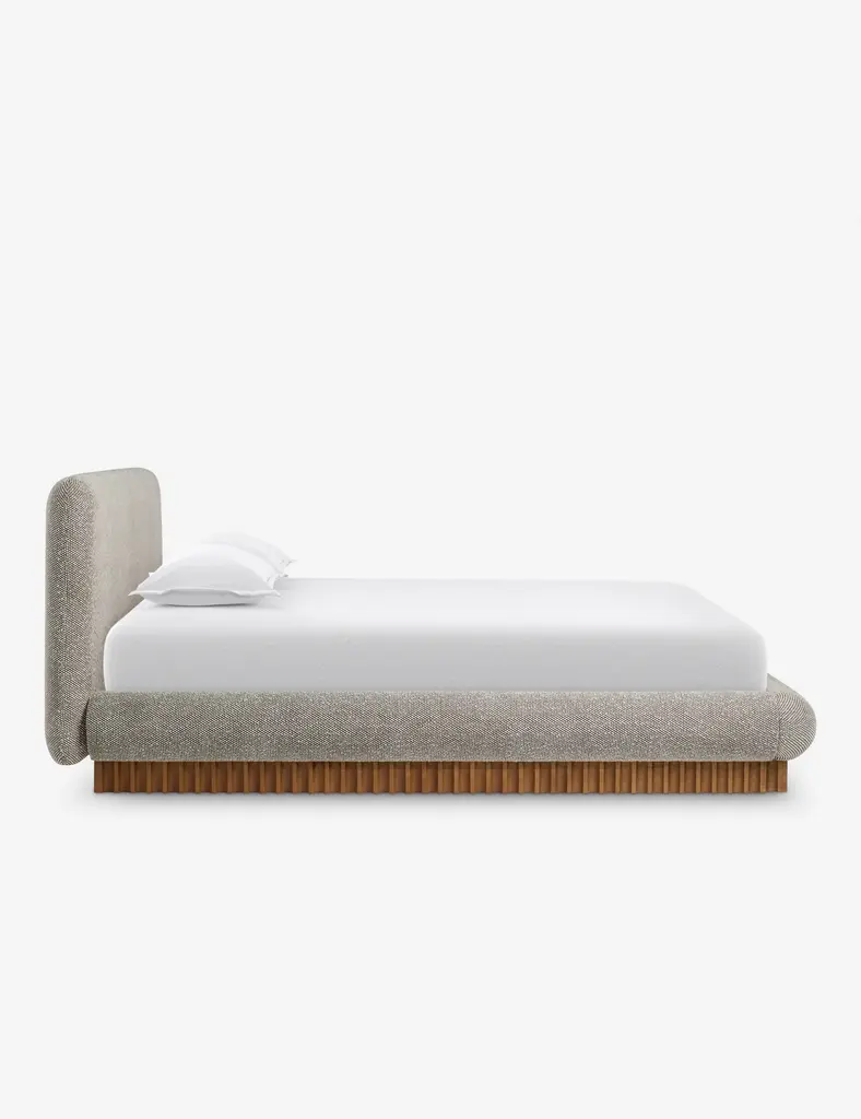 This plush, overstuffed bed frame offers a cozy night's sleep with its signature profile. Set on a rippled wooden plinth base, the boucle upholstery and gentle lines inspire a cloud-like softness you'll love climbing into. This bed is from our exclusive Sarah Sherman Samuel collaboration and features all the trademarks of her warm, edited style.