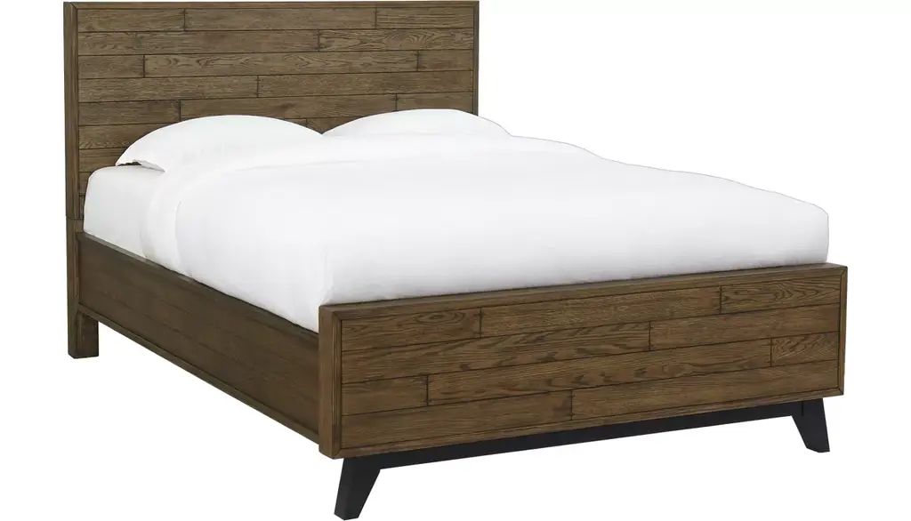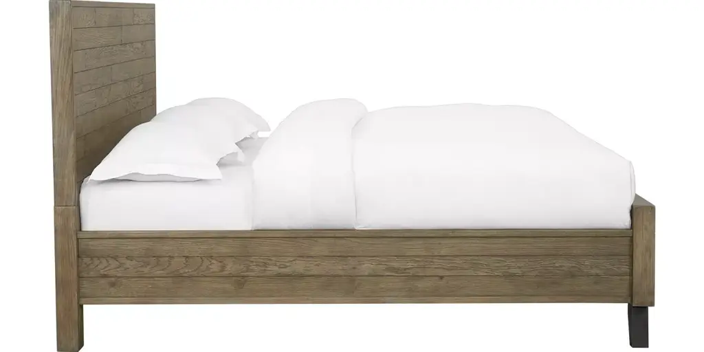 Our Boulder Creek bed allows the natural beauty of poplar wood and oak veneers to shine. A distressed, weathered oak finish creates reclaimed appeal, while the sleek lines of the headboard and footboard add a modern edge. Use the information below along with the height of your mattress to select the right foundation for your new bed. Our Havertys sleep experts can also help you select the perfect mattress for your sleep needs.