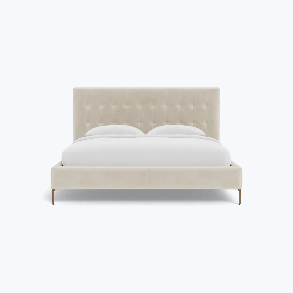 Exclusive to ABC Carpet & Home, the Boutique Queen and King Beds offer a perfect blend of timeless elegance and modern sophistication. Thoughtfully designed to bring both style and function to your bedroom, these beds feature a sleek silhouette that transforms any sleeping space into a serene and refined retreat. Whether you choose the queen or king size, these beds provide a statement of luxury that elevates the overall ambiance of your home. The Boutique Bed is designed with comfort and craftsmanship in mind. Its tailored, biscuit-tufted headboard adds a touch of plush elegance, while the clean lines and sophisticated detailing create a harmonious balance of form and function. Whether you’re creating a sanctuary in a small bedroom or a spacious master suite, the Boutique Queen and King Beds deliver an inviting and stylish place to rest, perfectly suited to both urban apartments and modern homes. Crafted with sustainability at the forefront, both the queen and king Boutique Beds are built from sustainably sourced wood that adheres to ABC’s Goodwood Standards. This eco-conscious approach ensures that your bed is not only beautifully designed but also made with the environment in mind. Proudly made in the USA as part of the Cobble Hill Collection, the Boutique Bed exemplifies ABC Carpet & Home’s commitment to quality craftsmanship and ethical manufacturing practices. The Boutique Queen and King Beds offer customization options that allow you to personalize your piece to suit your style. With over 80 fabric options available, including rich velvets, soft linens, and durable performance textiles, you can tailor the bed to reflect your unique taste. Whether you prefer the luxurious feel of velvet for a bold statement or the relaxed elegance of linen, the Boutique Bed is designed to complement any bedroom décor. The option to choose from a range of colors and textures allows for a bespoke touch that makes your bed truly one-of-a-kind.