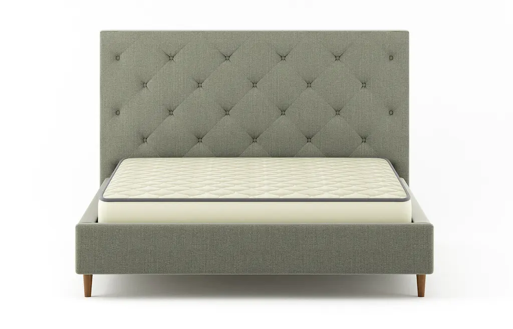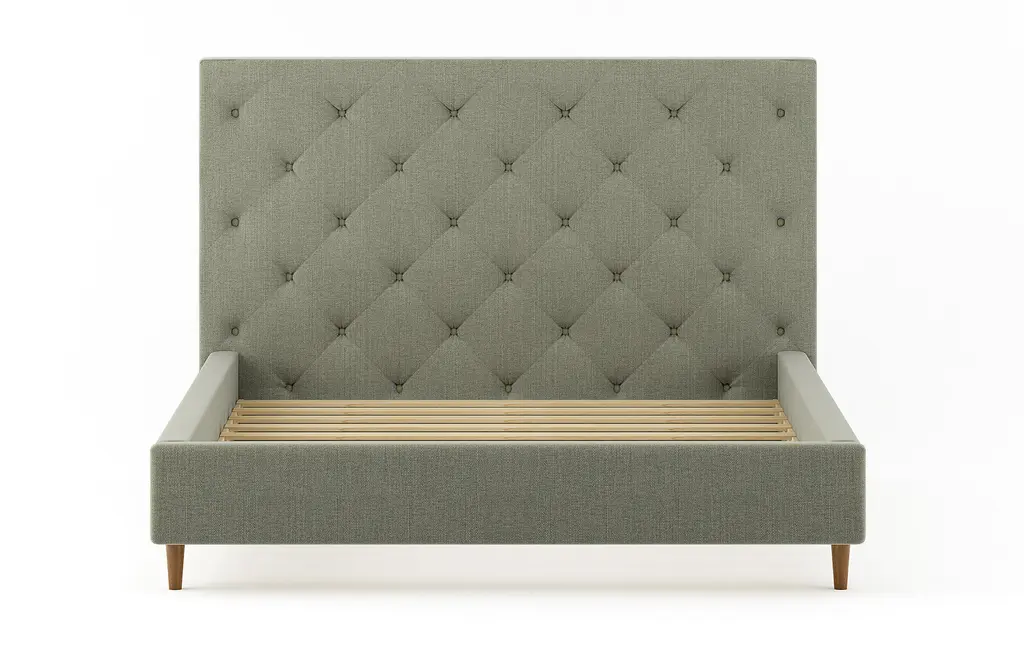 Minimal lines and a tall, softly padded headboard come together to create an elegant place to land each night. Choose between a sleek, solid panel headboard or a tufted version with buttons for a tailored look. Handcrafted with all natural wool and latex for the frame, and made to order in the US.