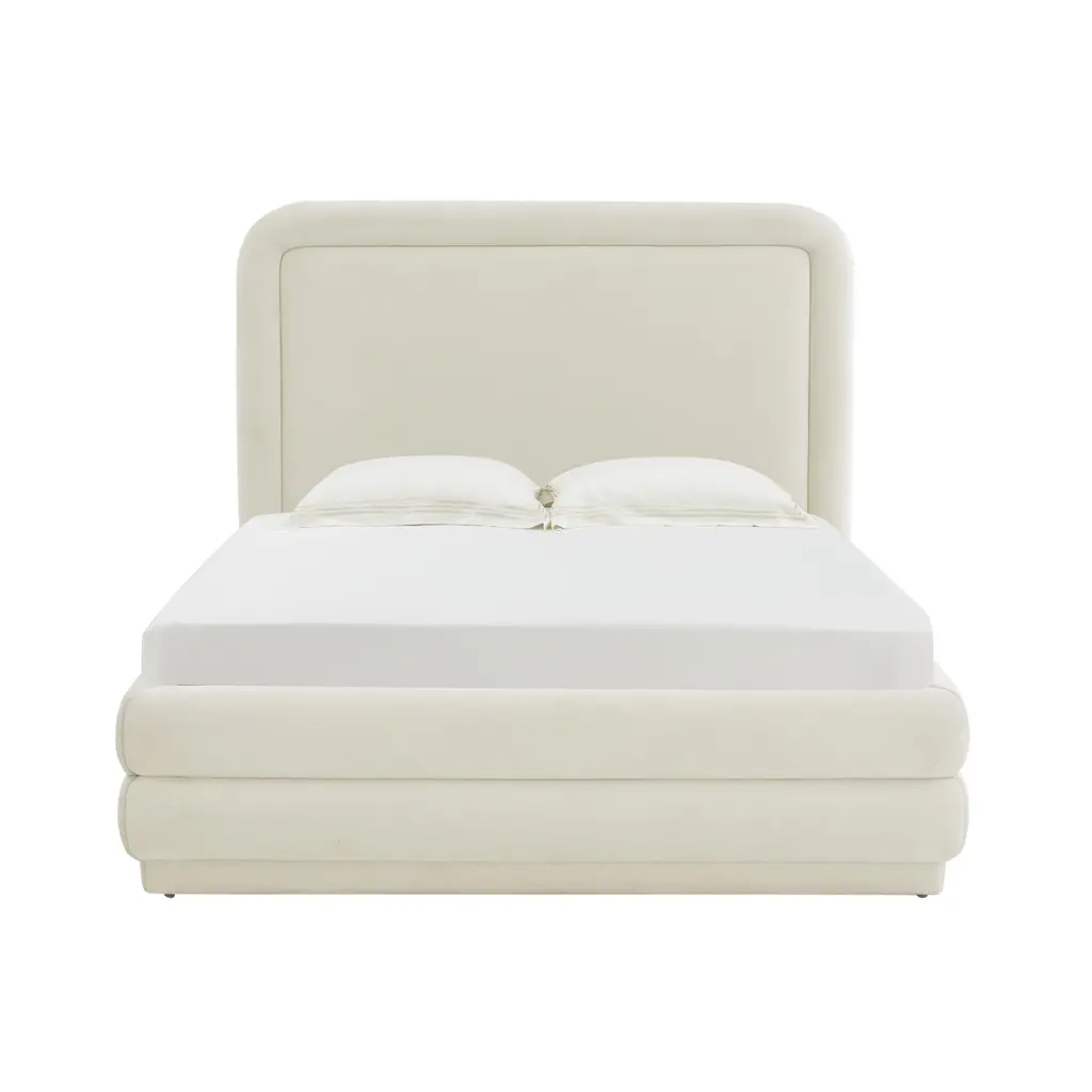 Simple and elegant - we bring you the Briella Bed. Sturdy pine wood frame is upholstered in soft and sumptuous velvet fabric. Its clean and cultured modern design lends itself to being the perfect center piece of your stylish bedroom. Available in multiple colors and sizes.