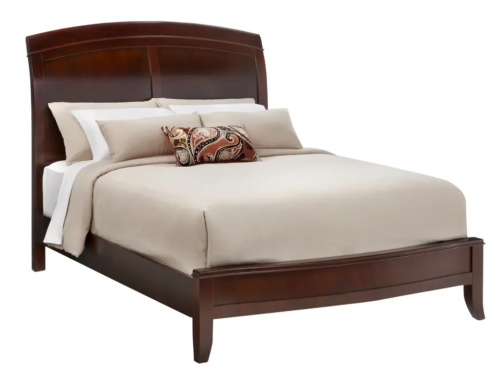 The Brighton bed is built to withstand time and trends. Crafted of tropical mahogany solids and cherry veneers, this modified sleigh bed is finished in a warm, engaging shade of cinnamon. Quality construction is evident throughout, from dovetail joints to corner blocking for durability. Whether paired with your current bedroom furnishings or matched with the rest of the Brighton collection, you'll love luxuriating in this elegant bed.