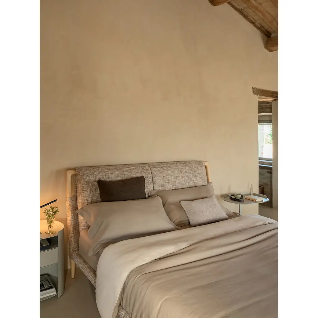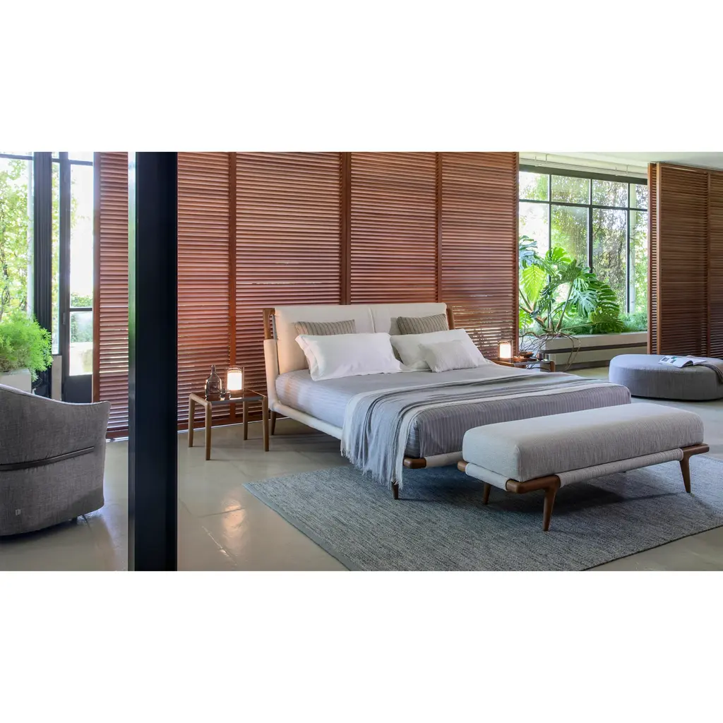Immerse yourself in luxury with the Gaudì Bed. Crafted from natural and elegant solid wood in a variety of finishes, its headboard and footboard boast artisanal details that create a unique and sinuous frame. With the option of fabric or leather upholstery, this bed exudes sophistication and exclusivity.