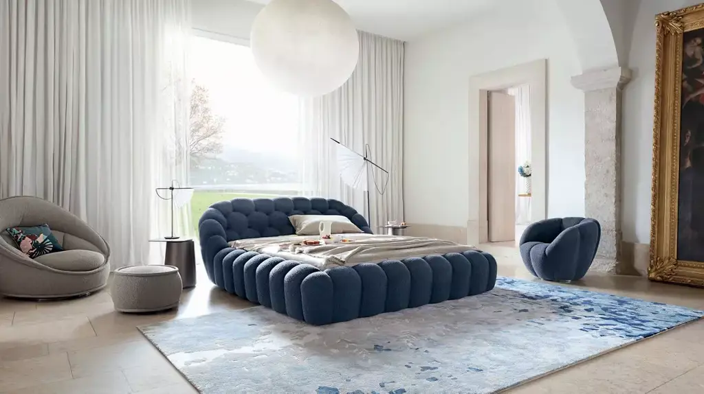 Resembling a cloud, this enveloping bed with plump curves echoes its predecessors - the original Bubble sofas and armchairs. Like all the Bubble models, this bed is the epitome of comfort and draws you into a restful sleep.