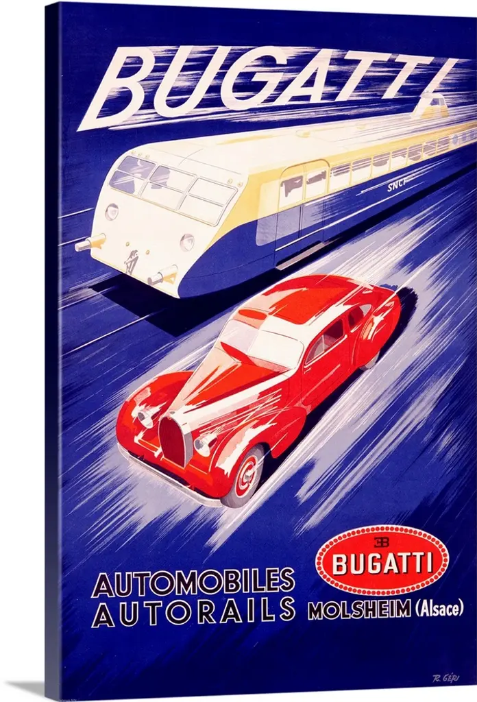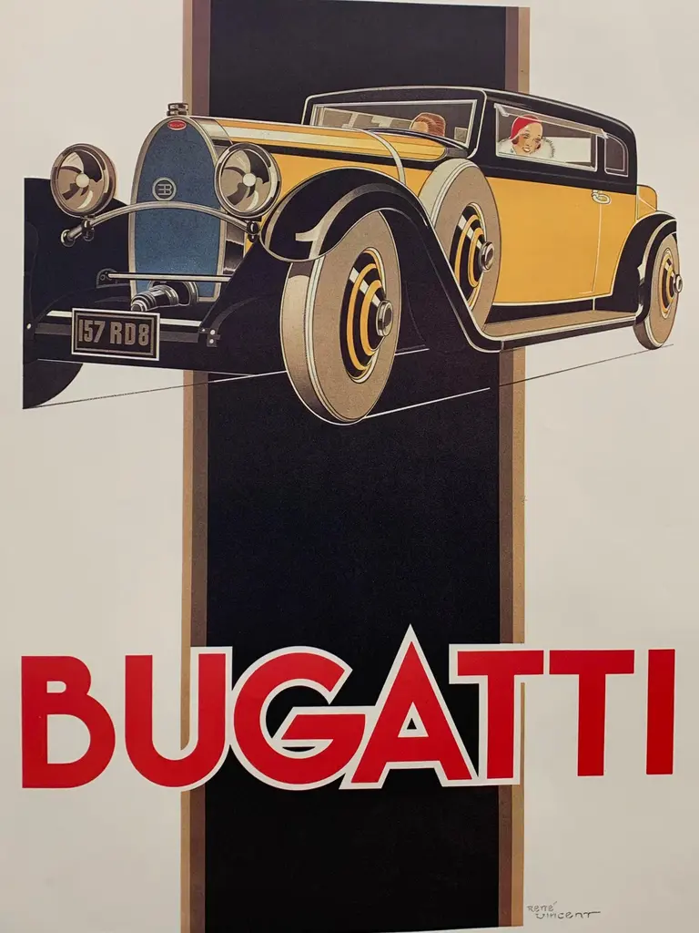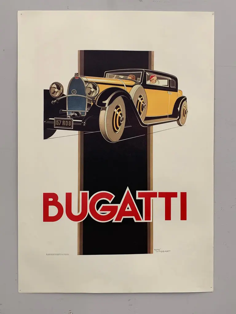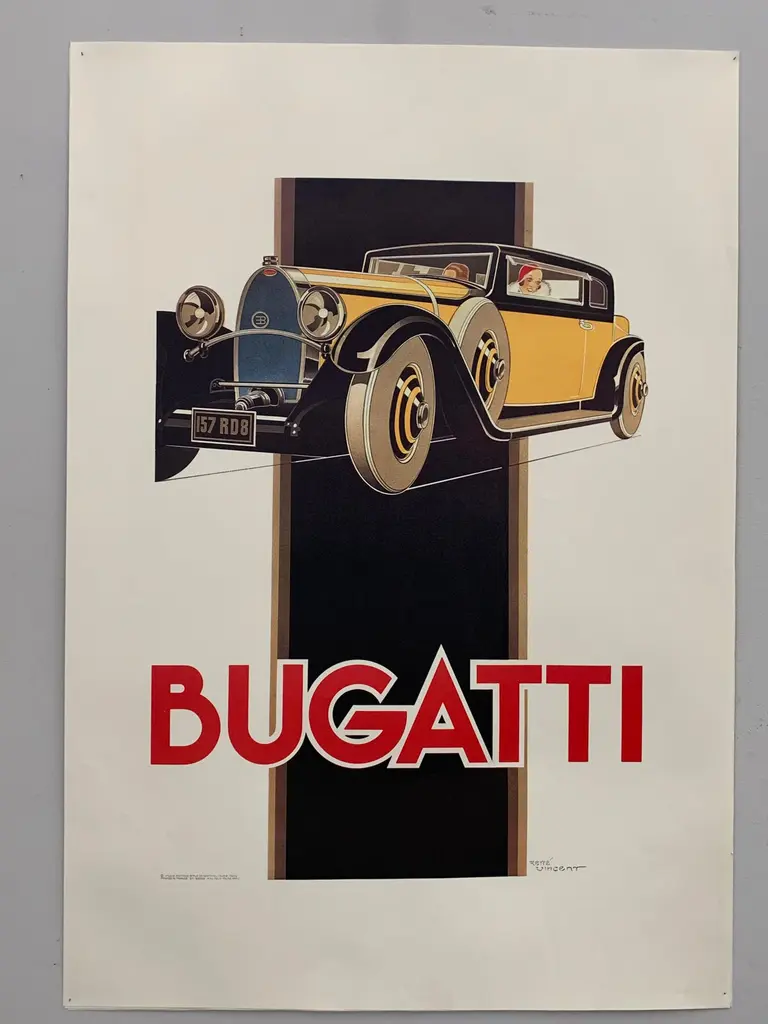 Bugatti Poster By Rene Vincent For Bedos, Paris, 1960s