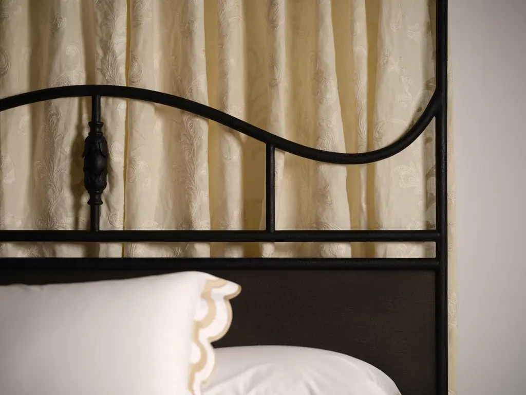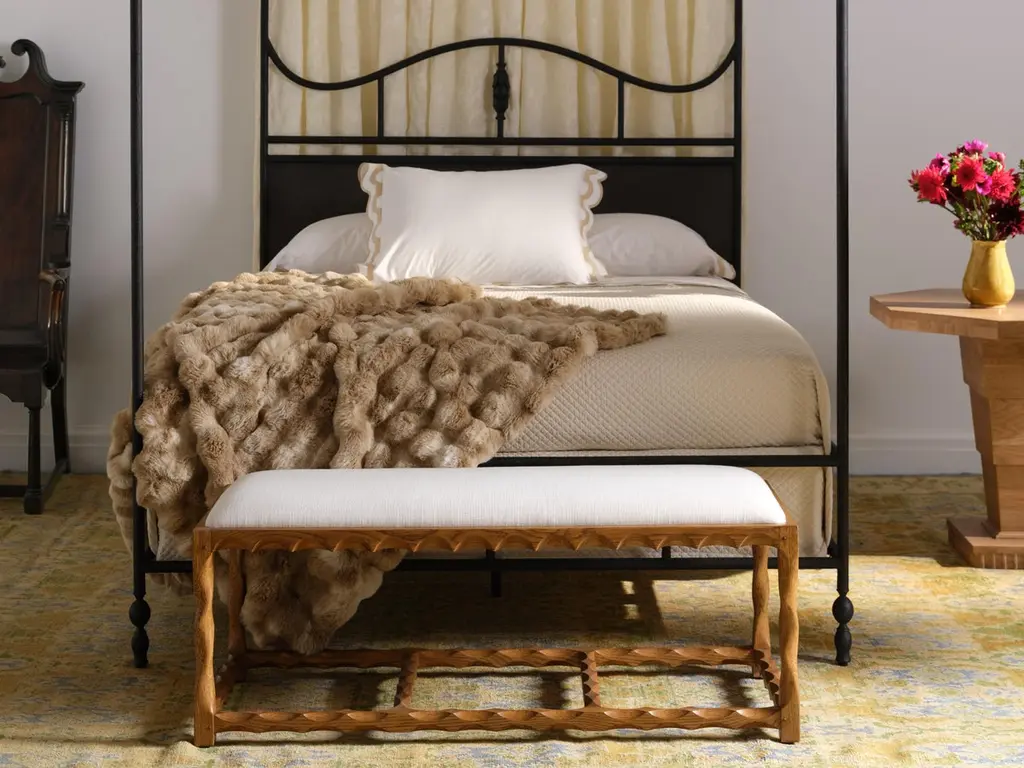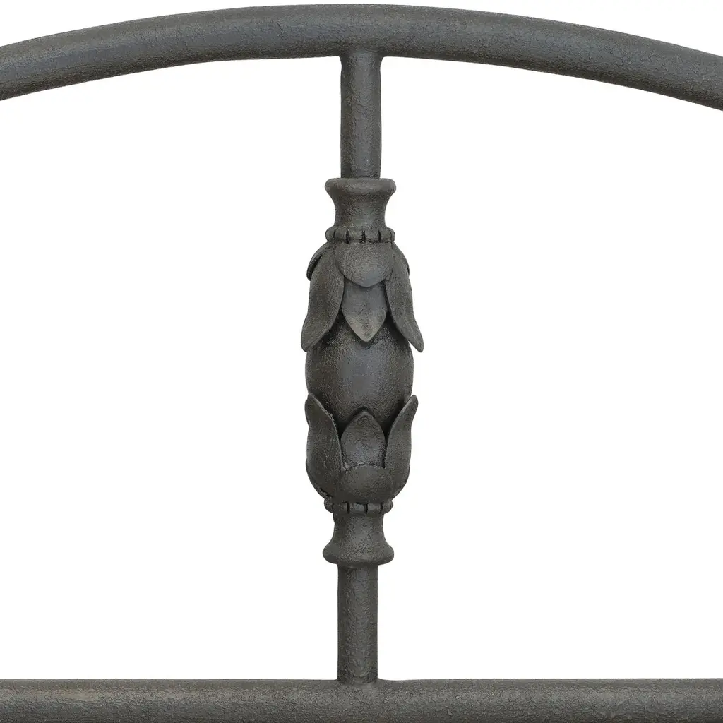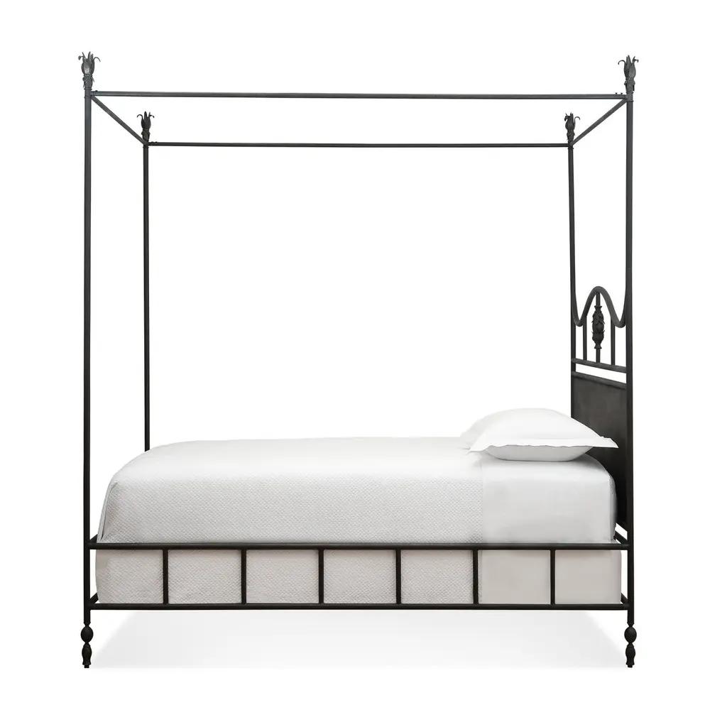 A canopy bed does wonders for a room—it not only creates a striking focal point but also elevates both your space and your spirits. You spend a third of your life asleep, so why not elevate that experience, too? Our Marlon Bed has a crisp, contemporary design—inspired by Italian Renaissance Revival style, with its strong forms—feels just as at home in a modern apartment as it would a classic villa. The Marlon Bed works wherever you want it, as long as your ceiling clears ninety-two inches (and a smidge more).Floor to top of slats: 9.5”Floor to bottom of side Rail: 8.5”Floor to top of Side Rail: 18.5”Slats to top of side rail: 9”Side rail height: 10”- Made of mild steel, with a heavily textured bronze finish.- Assembly hardware included.- We recommend a 9” boxspring.