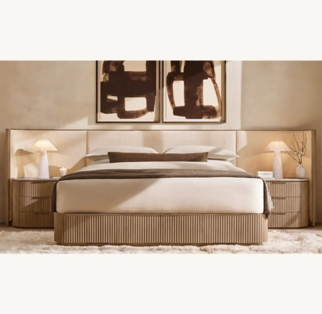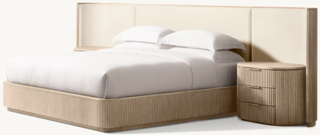 The bold shapes of our collection from Harrison and Nicholas Condos recall the proportions and fluid curves of postmodernism, while vertical reeding lends a classical counterpoint. The geometric frames, crafted of American white oak, appear to float on recessed plinth bases, casting a crisp shadow line.SHOP THE ENTIRE COLLECTIONSHOP ALL MATTRESSES