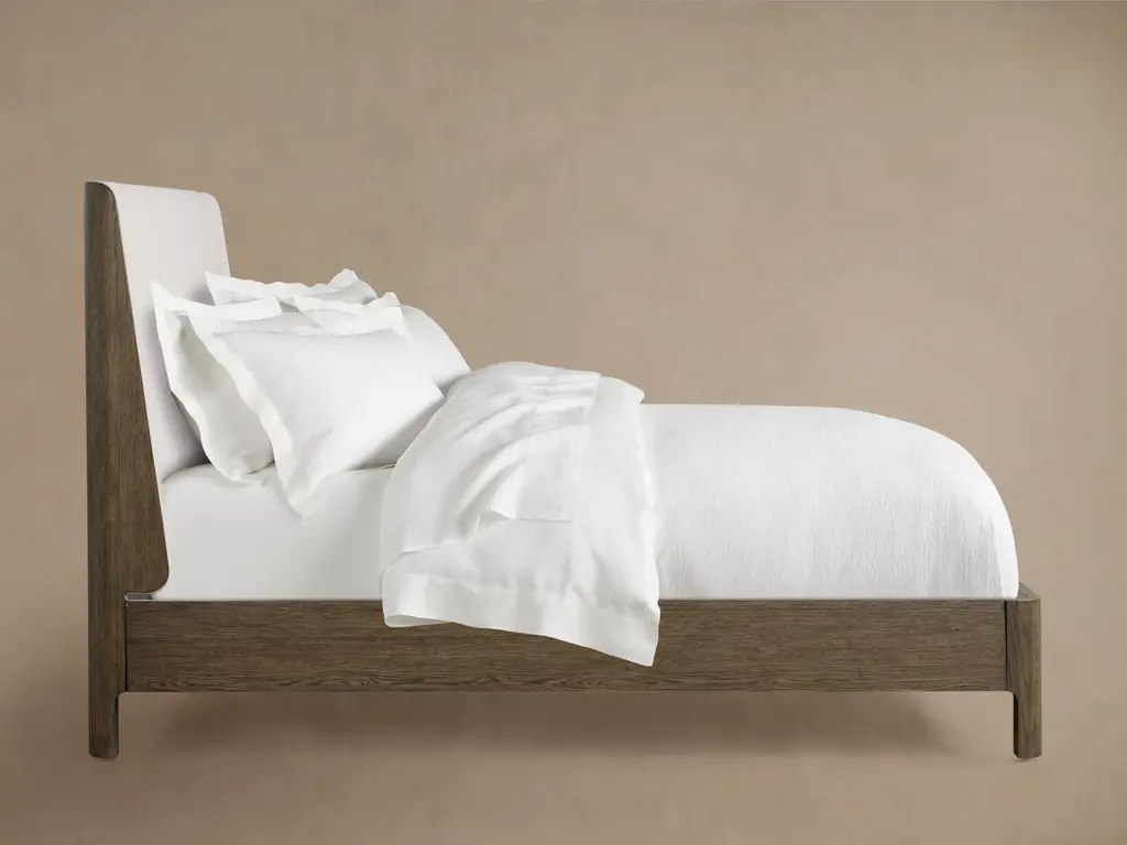 Featuring clean lines and subtle curves, our Calista Bedroom Collection is all about the small details. Crafted with veneered oak, the frame’s rounded corners complement the angled shelter wings that offer enveloping comfort of sumptuous upholstery.