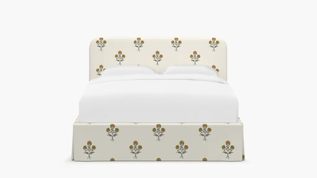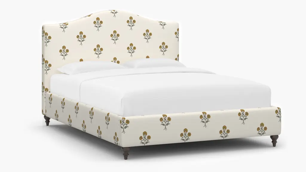 The elegant shape of our timeless Camelback Bed adds an understated, refined touch to any bedroom. If you prefer a higher bed or additional support, our box spring beds require a standard box spring or foundation. Our platform beds are designed to support your mattress directly on the slats, making a box spring unnecessary. This setup offers a low-profile look and maintains the sleek, modern aesthetic. Customize in 30+ fabrics.