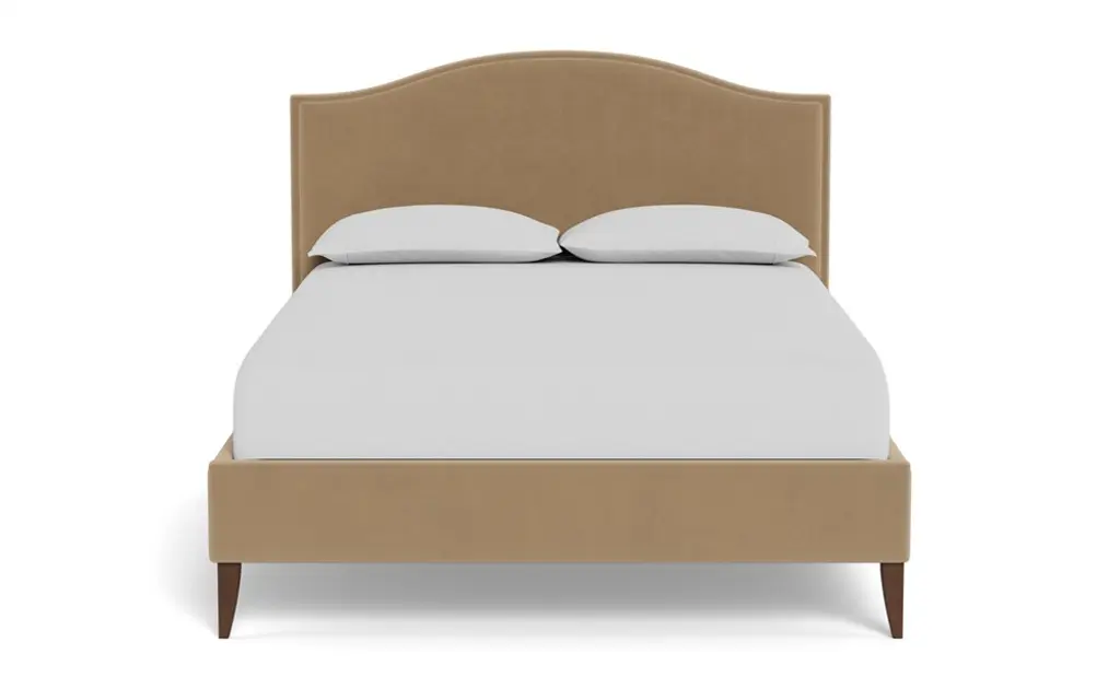 The elegant shape of our timeless Camelback Bed adds an understated, refined touch to any bedroom. If you prefer a higher bed or additional support, our box spring beds require a standard box spring or foundation. Our platform beds are designed to support your mattress directly on the slats, making a box spring unnecessary. This setup offers a low-profile look and maintains the sleek, modern aesthetic. Customize in 30+ fabrics.