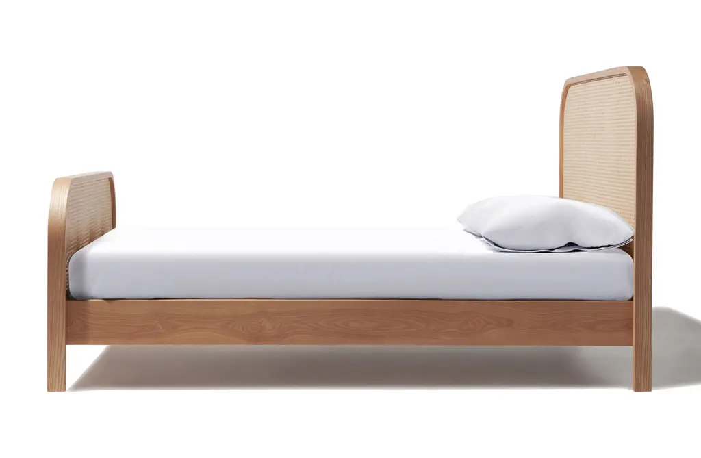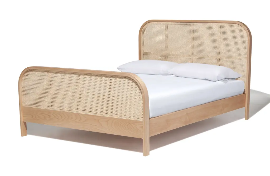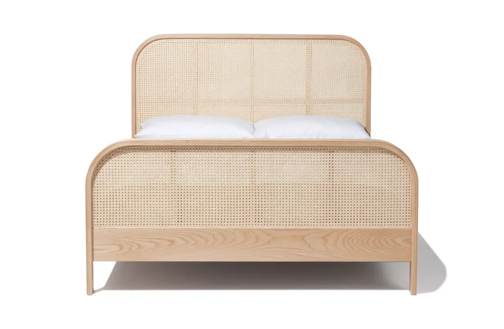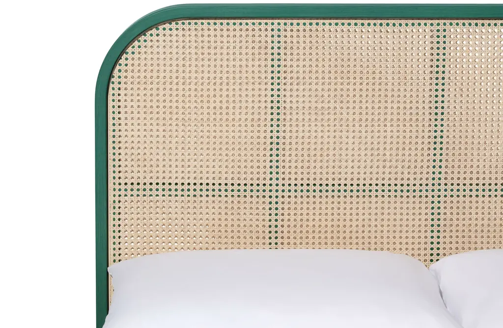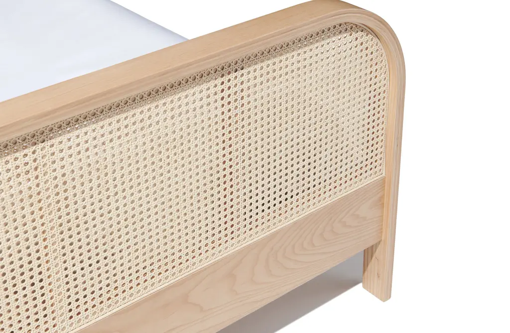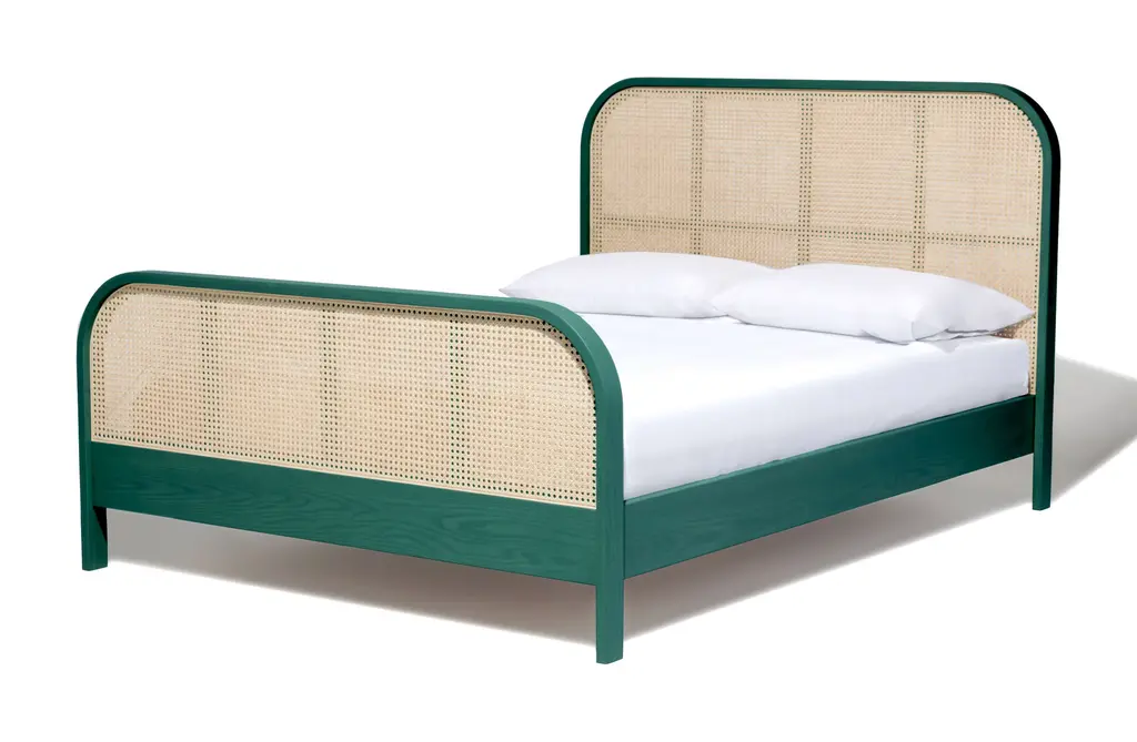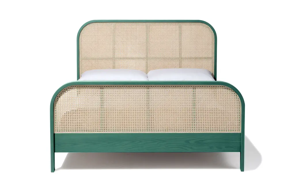 A contemporary reinvention of a popular mid-century design, the Cane Bed hosts vibrant ash wood and curved contours for an unmistakable bedroom centerpiece. Our Cane Bed pairs perfectly with the rest of our Cane Collection, including our Cane Nighstand and Cane Wardrobe.The Cane Bed features a strong, ash wood frame, while the headboard and footboard of the Cane Bed consists of woven cane. Vibrant color options for the Cane Bed include black, cactus green, natural, forest green, coral pink, noce white, and ocean blue. The Cane Bed is available in King, Queen, Twin, and Full size and is platform heigh for under-bed storaget.