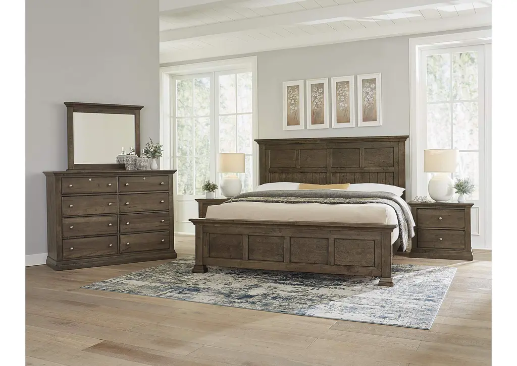 The Window Pane Bed offers a more casual appeal that includes solid Birch planking framed by a wide bed post and 3 inch cap rail crafted from solid Maple