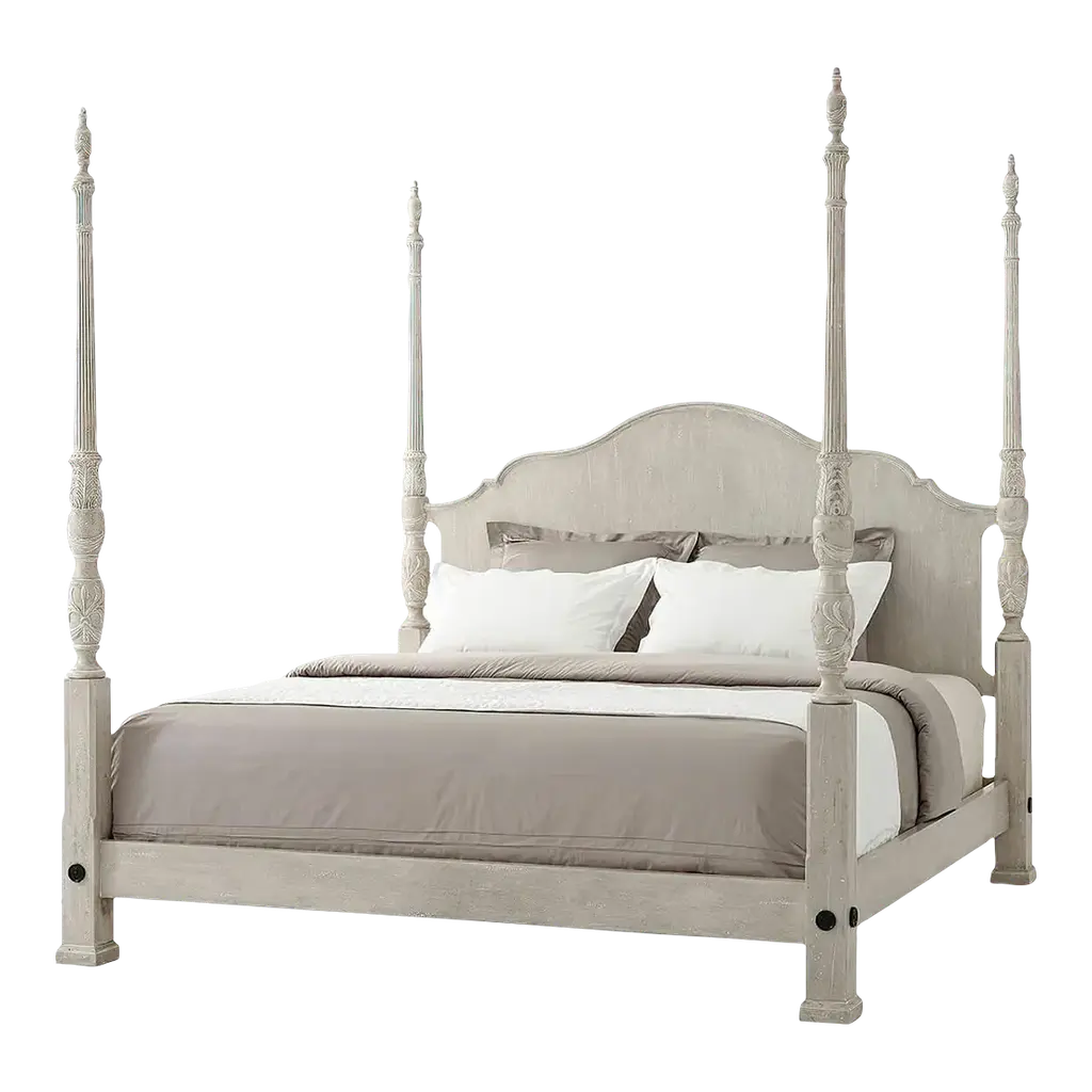 Carved 'Limestone' Painted Four Poster King Size Bed