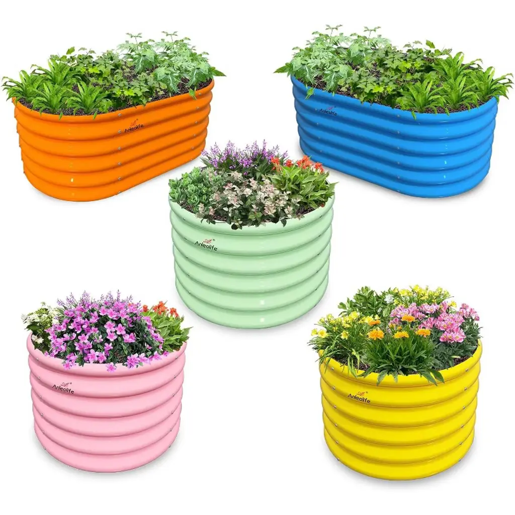 Cesicia 2Pcs 3×2ft Quartz Grey Round Raised Garden Bed