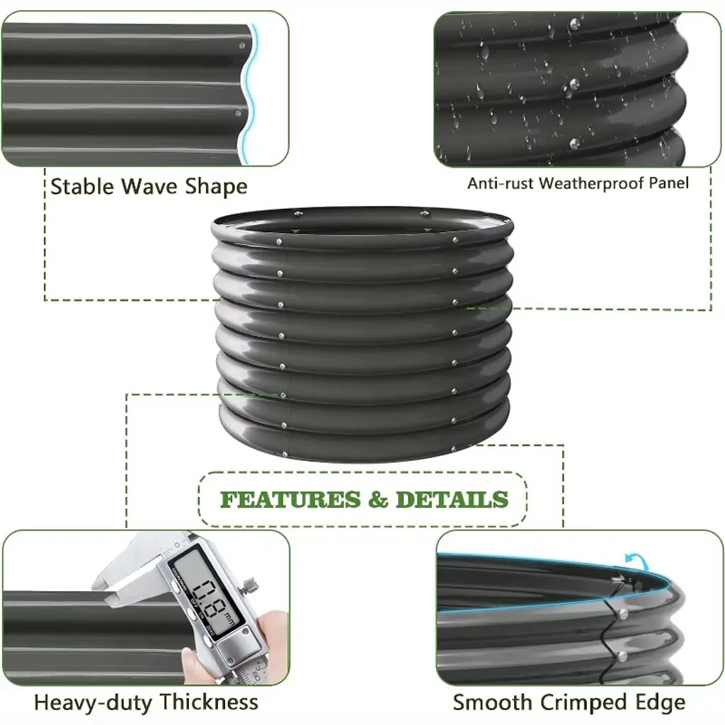 This 24" tall raised garden bed is made from durable 22-gauge 0.8mm galvanized steel with eco-friendly powder coatings for long-lasting use. Its open bottom design ensures excellent drainage and healthy soil for optimal plant growth. With a comfortable working height, it¡¯s perfect for growing vegetables, flowers, and herbs in your garden or patio.