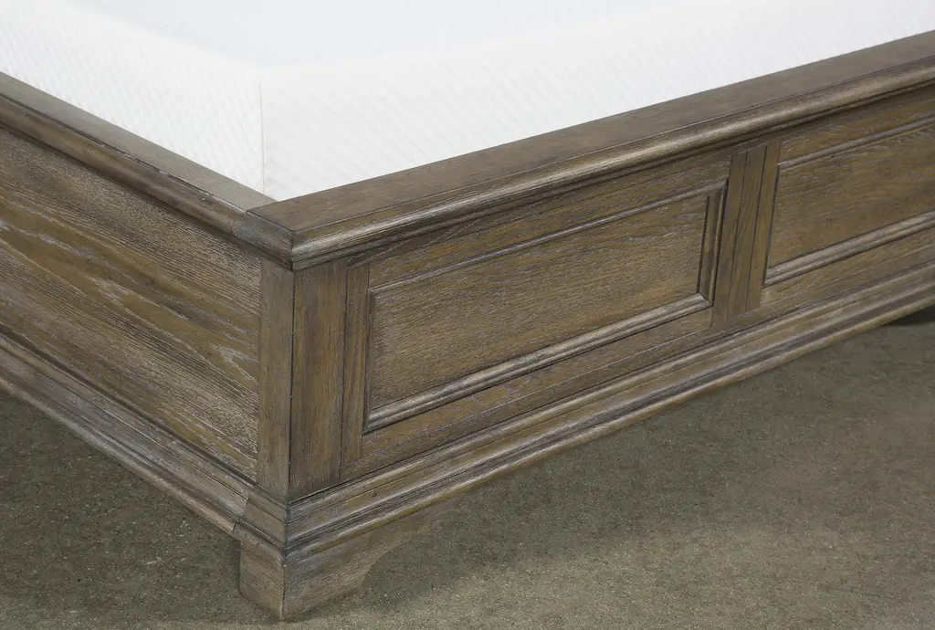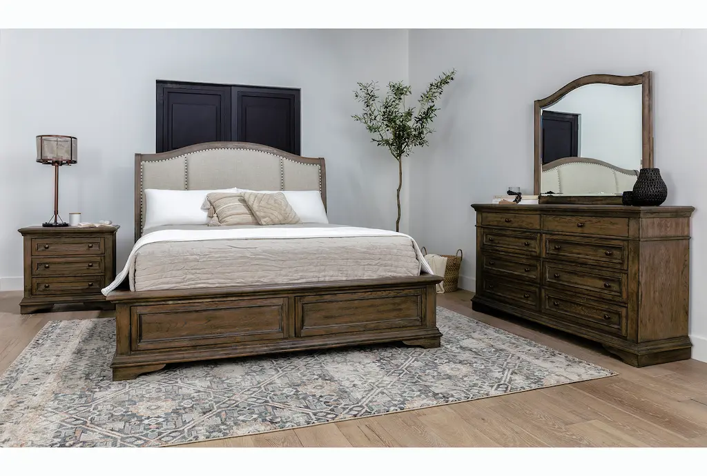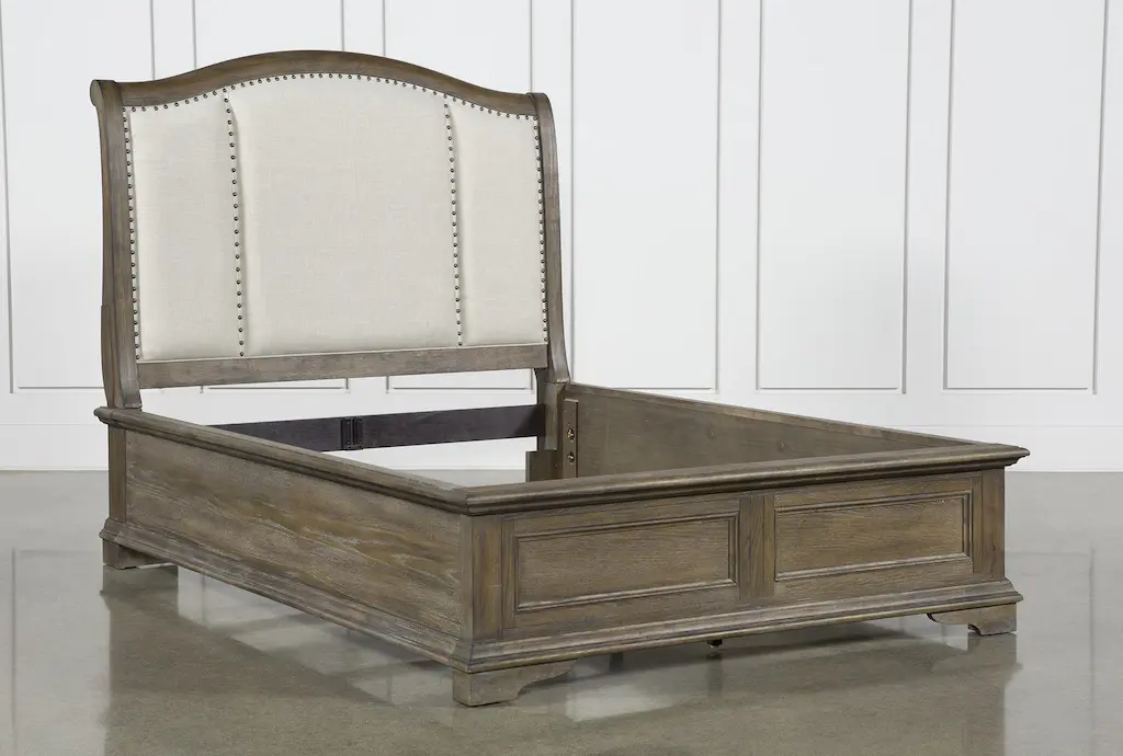 Elegantly detailed and skillfully constructed, our Chapman bed will bring traditional beauty to your space. Solid hardwood and white oak veneers combine to create this stunning, sturdy sleigh-shaped design, which features an upholstered headboard panel trimmed with nailhead accents.