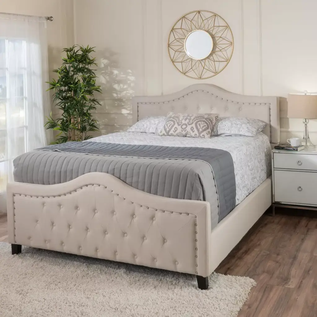 Christopher Knight Home Queen Virgil Upholstered Bed Set Ivory: Hardwood Frame, Foam Fill, No Box Spring Needed