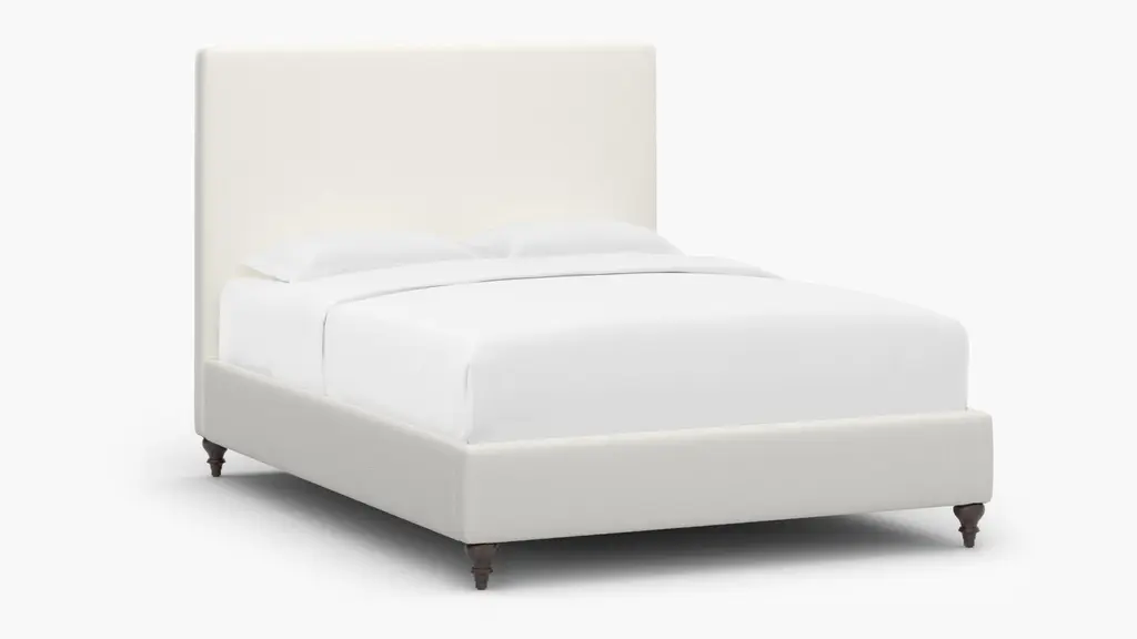 The perfect blank canvas for a personal touch, our Classic Bed's clean lines lend itself to any fabric or color. If you prefer a higher bed or additional support, our box spring beds require a standard box spring or foundation. Our platform beds are designed to support your mattress directly on the slats, making a box spring unnecessary. This setup offers a low-profile look and maintains the sleek, modern aesthetic. Customize in 100+ fabrics.