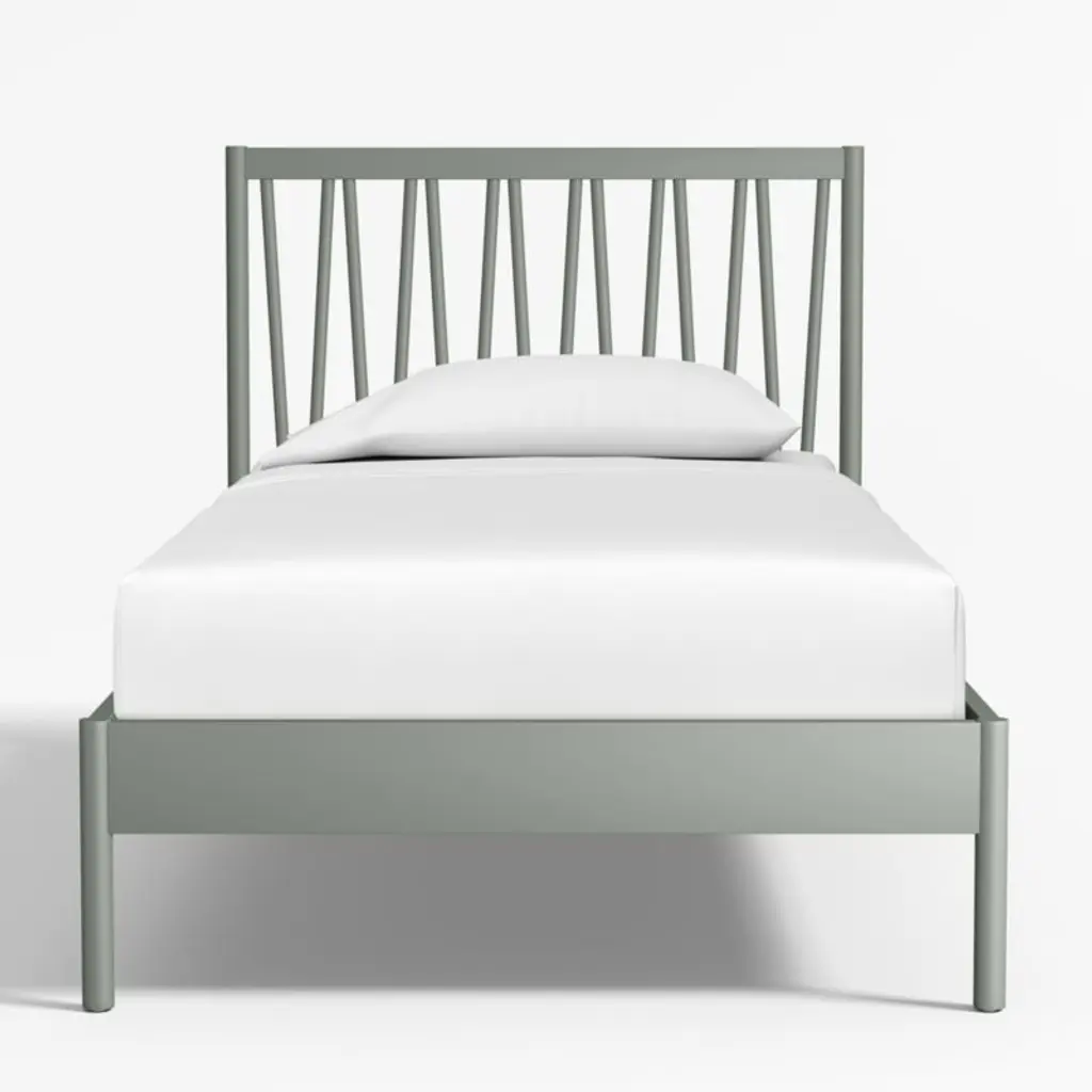 With its clean lines, our Classic collection gives a subtle nod to mid-century designbut its trend-forward colors make it a stunning addition to any modern kid's room. The bed's playfully angled spindles and earthy laurel green hue blend effortlessly with any decor, and its solid FSC®-certified wood construction is as durable as it is beautiful. Pair with other pieces from our Classic collection for a totally coordinated look.