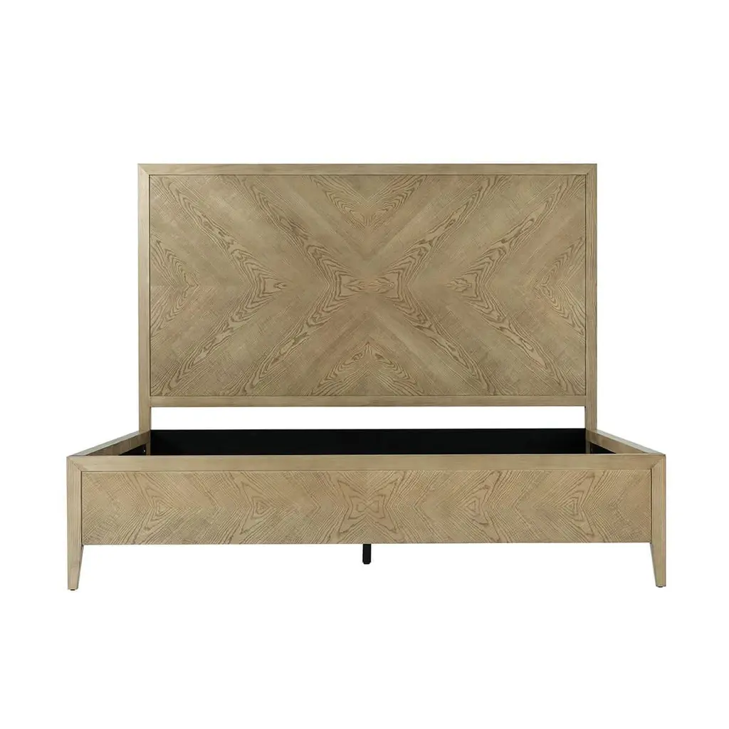 Classic Modern Bed, in our light dune finish, the undeniable simplicity of the bed frame captures the essence of calm with a classic frame, figured ash 4-way book-matched headboard, and rails with a tapered finished leg.California King dimensions: 77" W x 88.5" D x 65" H