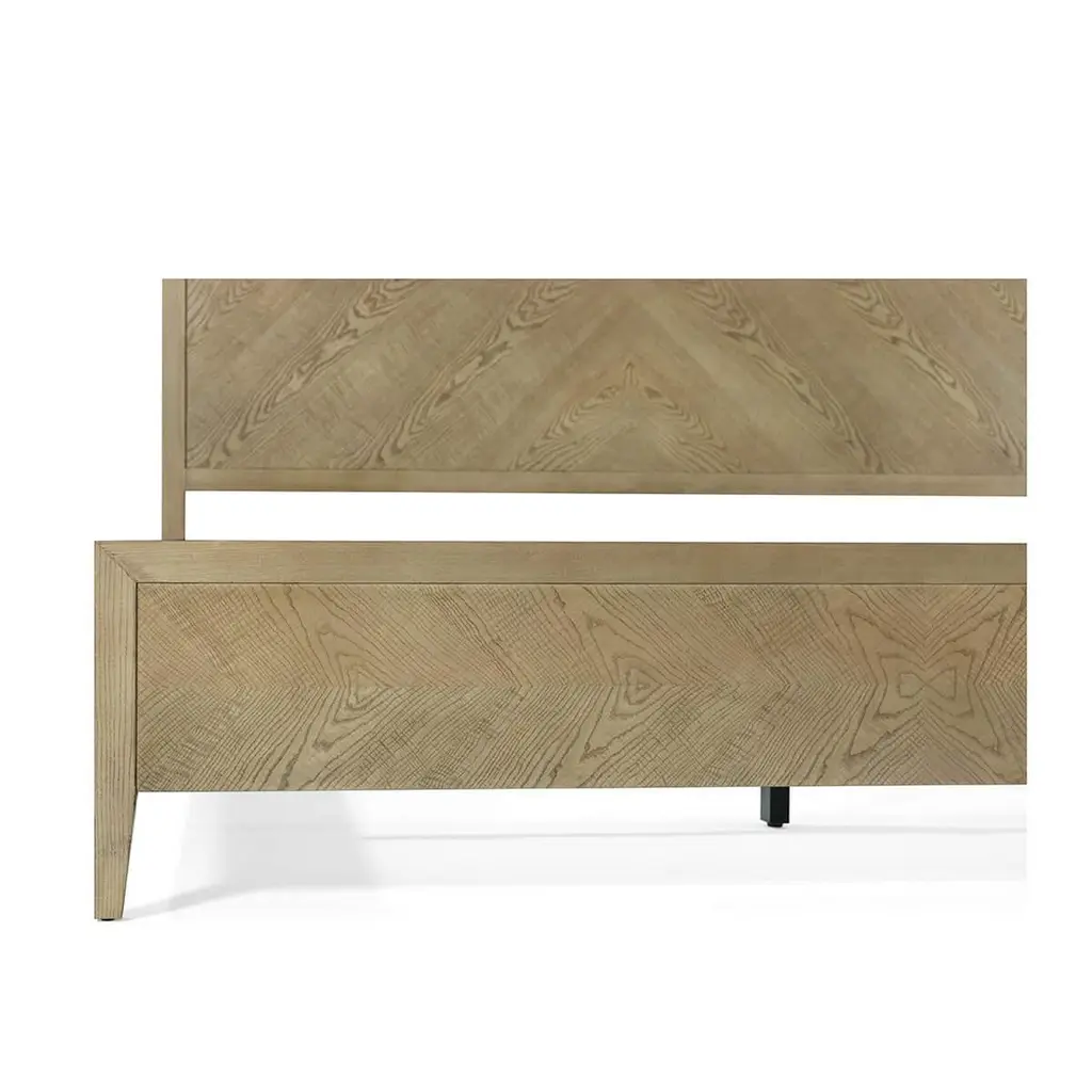 Classic Modern Bed, in our light dune finish, the undeniable simplicity of the bed frame captures the essence of calm with a classic frame, figured ash 4-way book-matched headboard, and rails with a tapered finished leg.King dimensions: 81" W x 84.5" D x 65" H