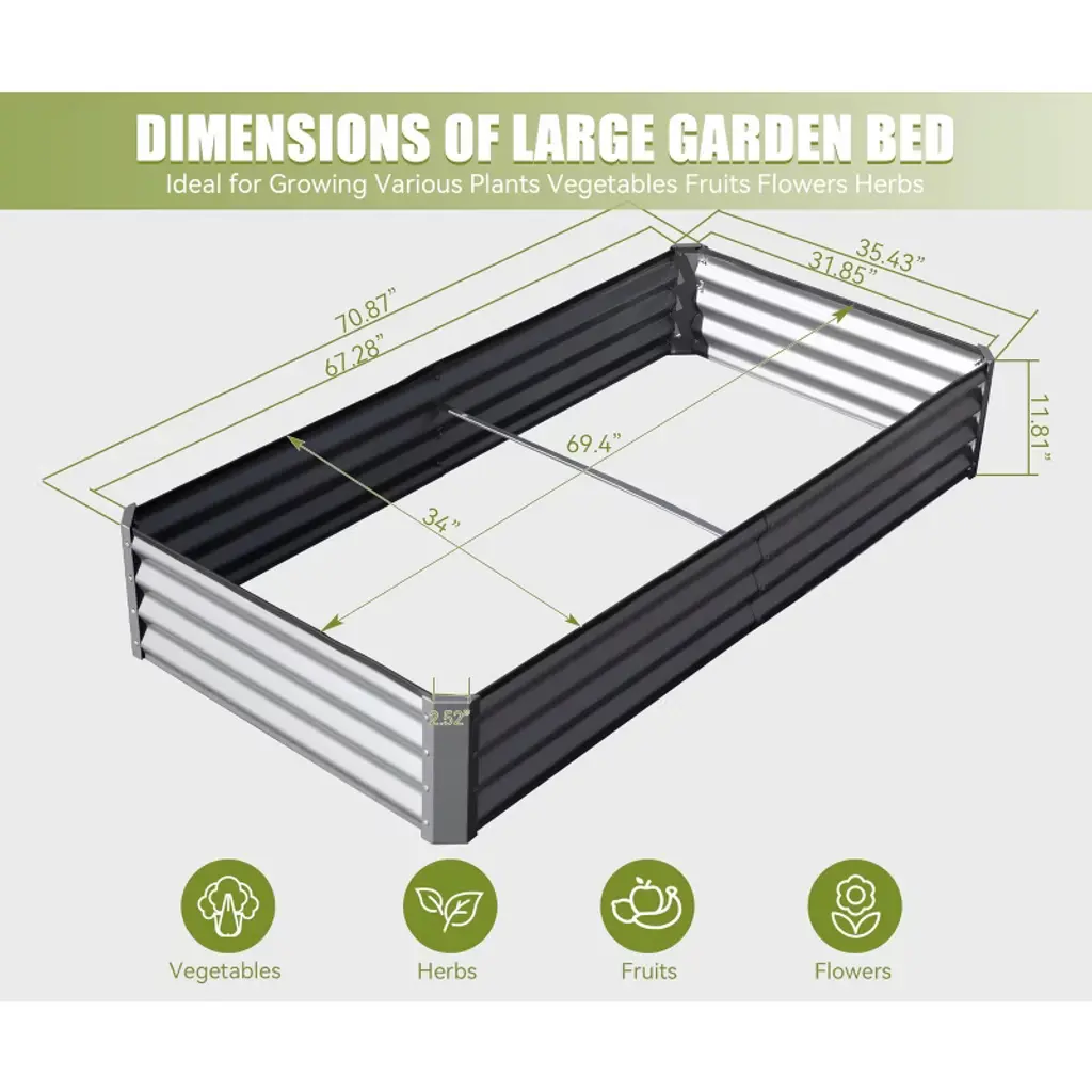 Upgrade your garden with our durable galvanized steel raised beds! Spacious and sturdy, they promote healthy root growth, drain excess water, and resist rust. Safe edges, strong support rods, and easy assembly make gardening both productive and enjoyable.