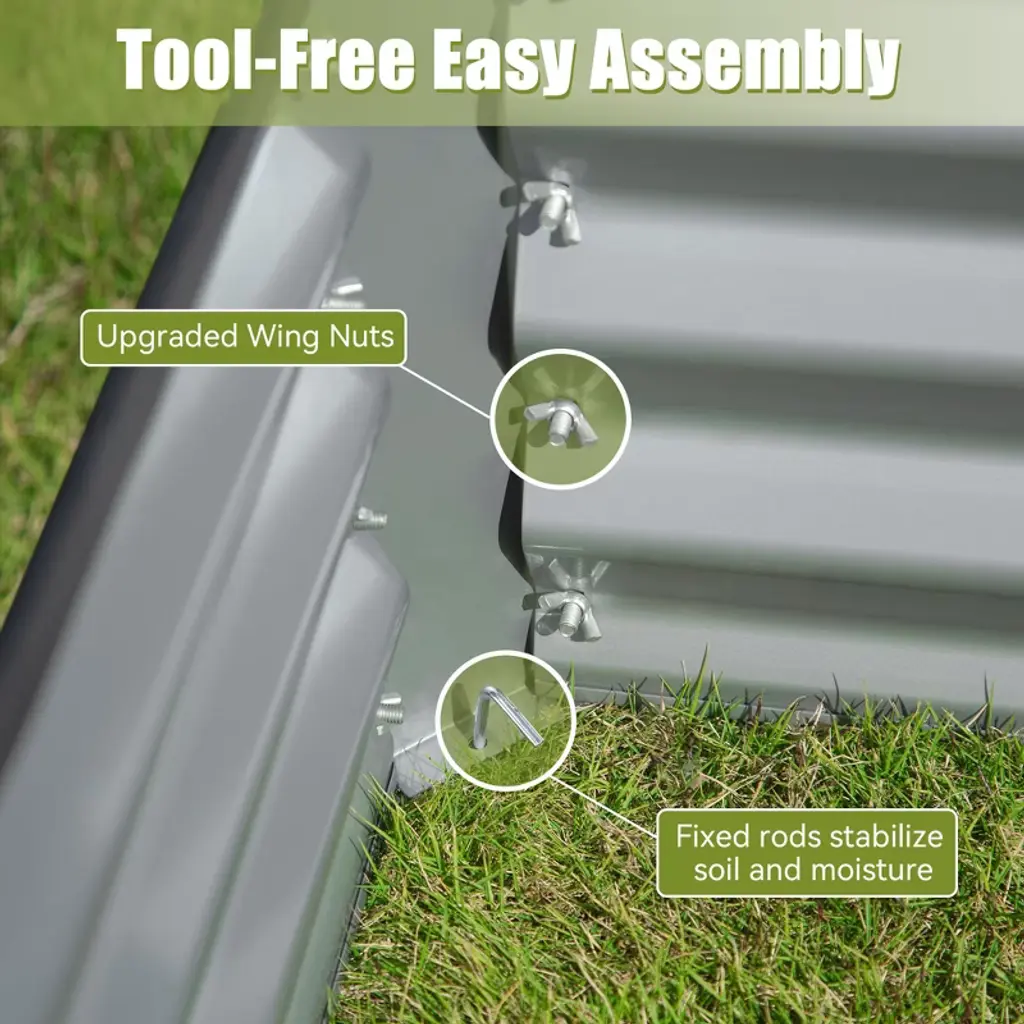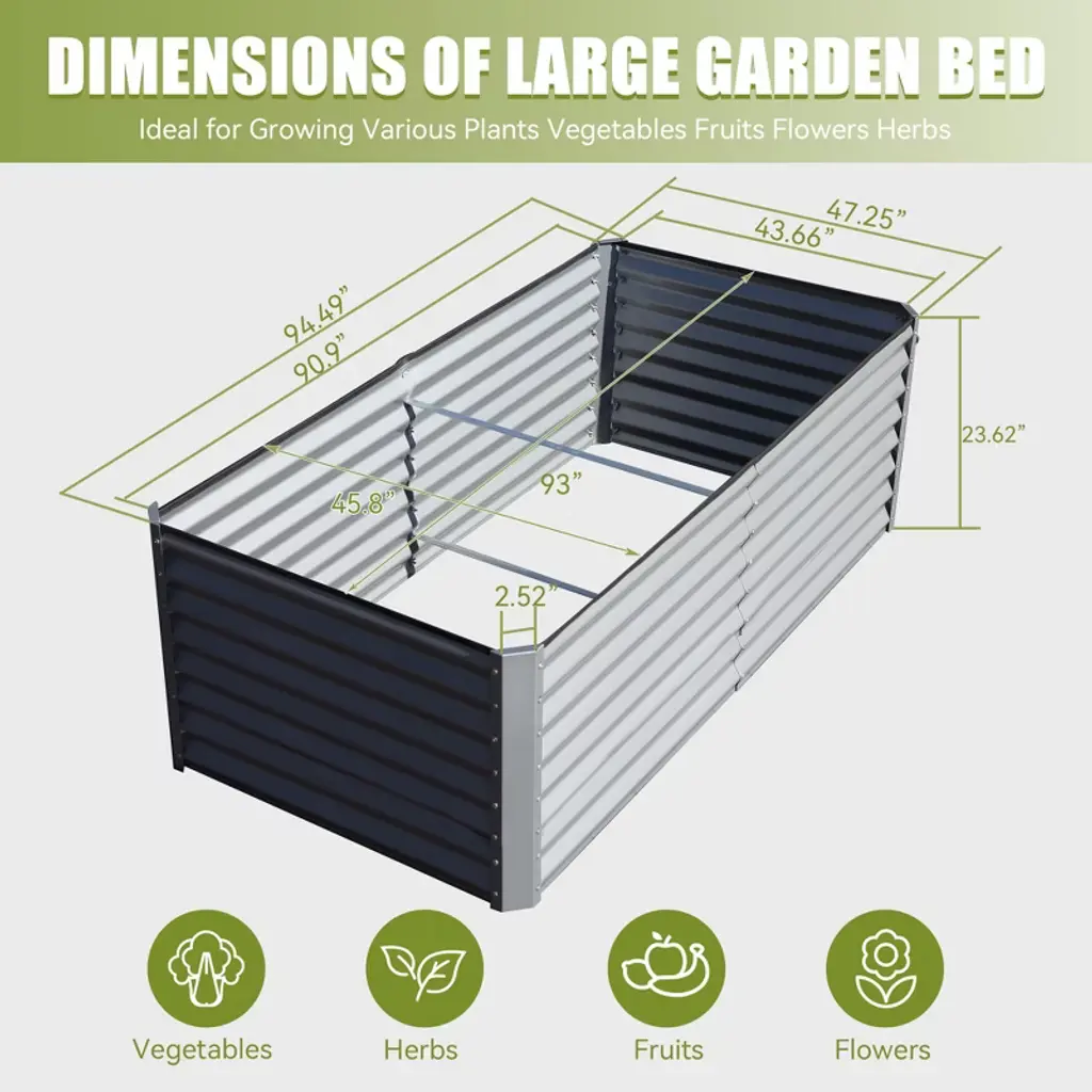 Grow more with our durable raised garden beds! Spacious design for healthy roots,rust-proof galvanized steel, and open-base drainage. Sturdy support rods prevent bulging, while thickened edges ensure safe gardening. Easy to assemble-perfect for veggies, herbs, and flowers!