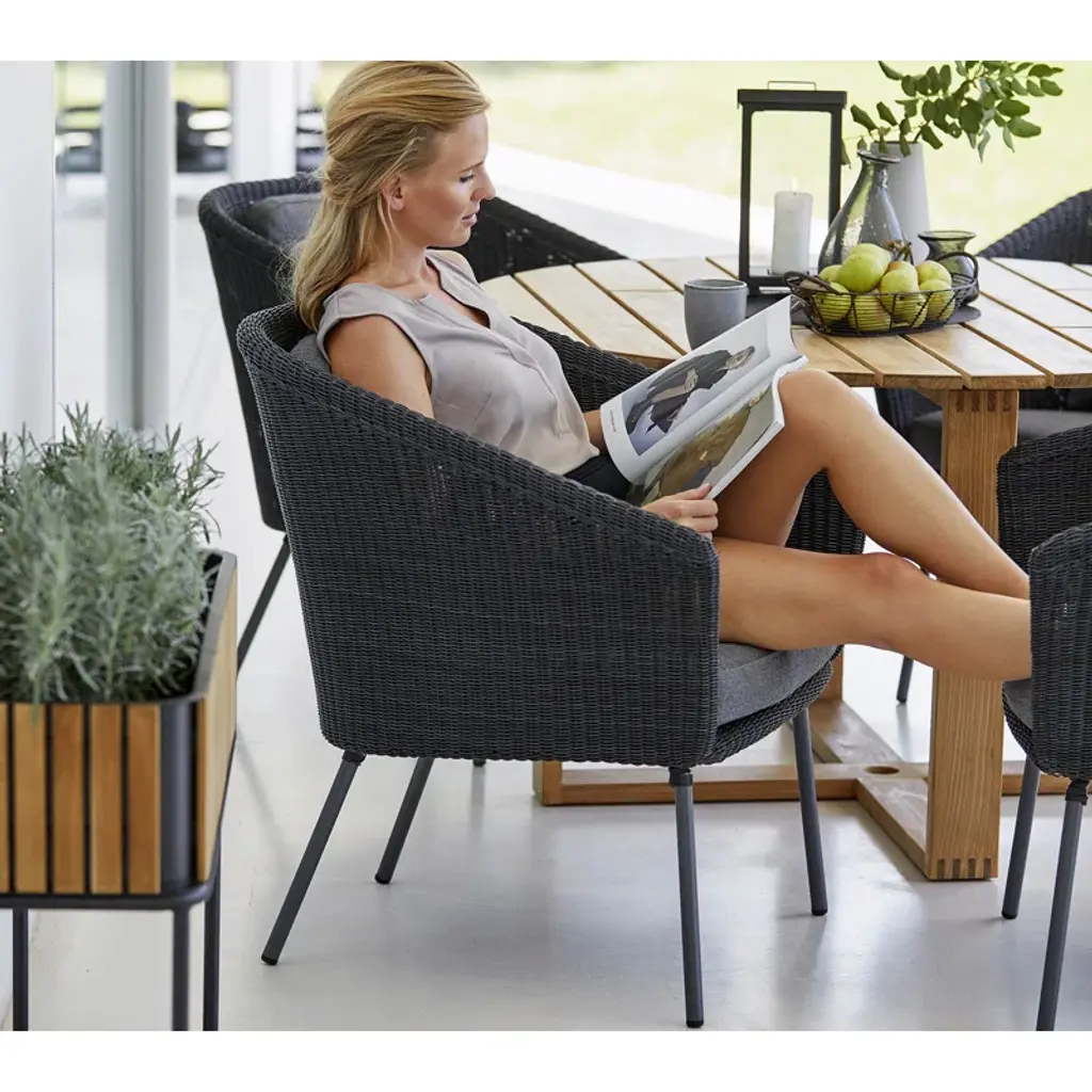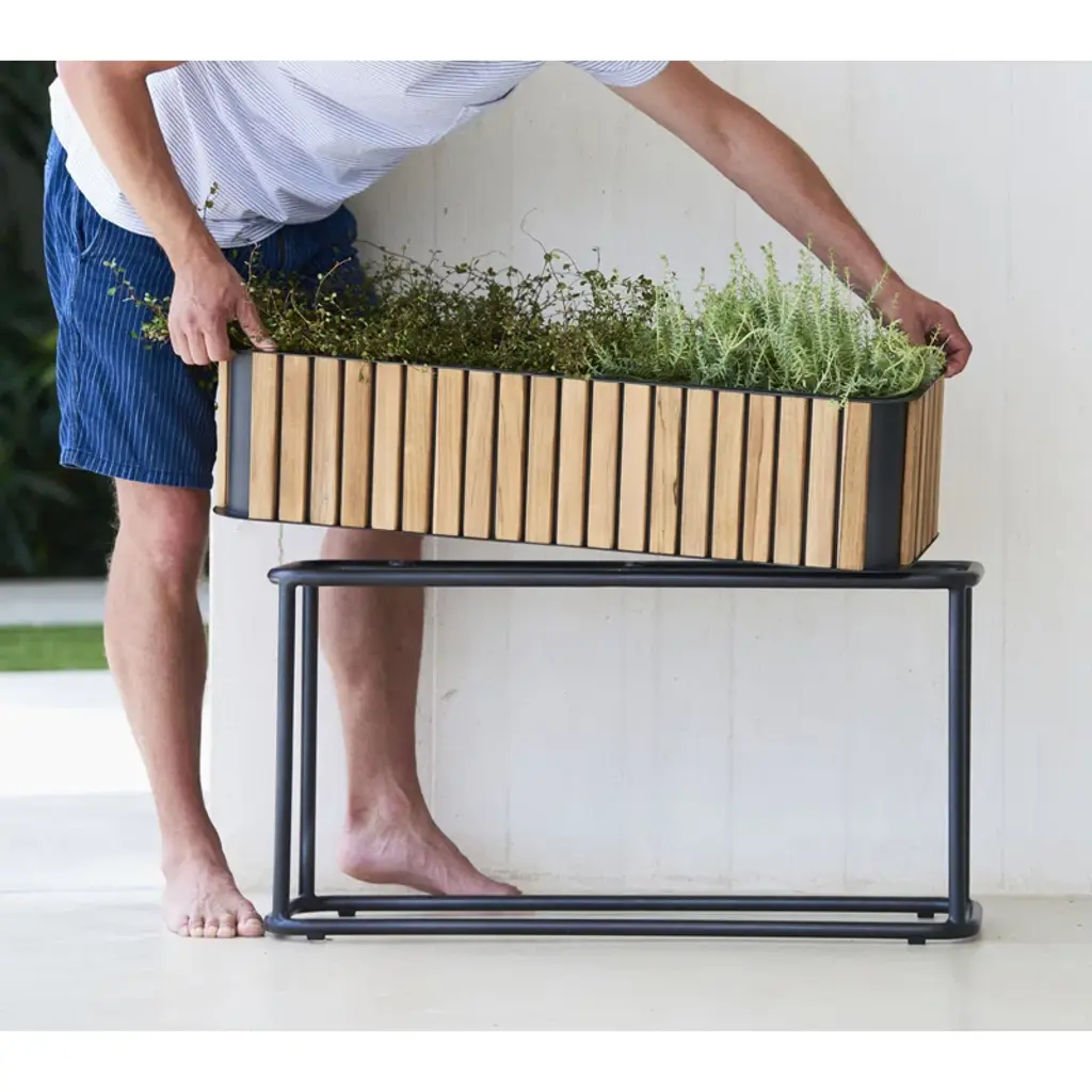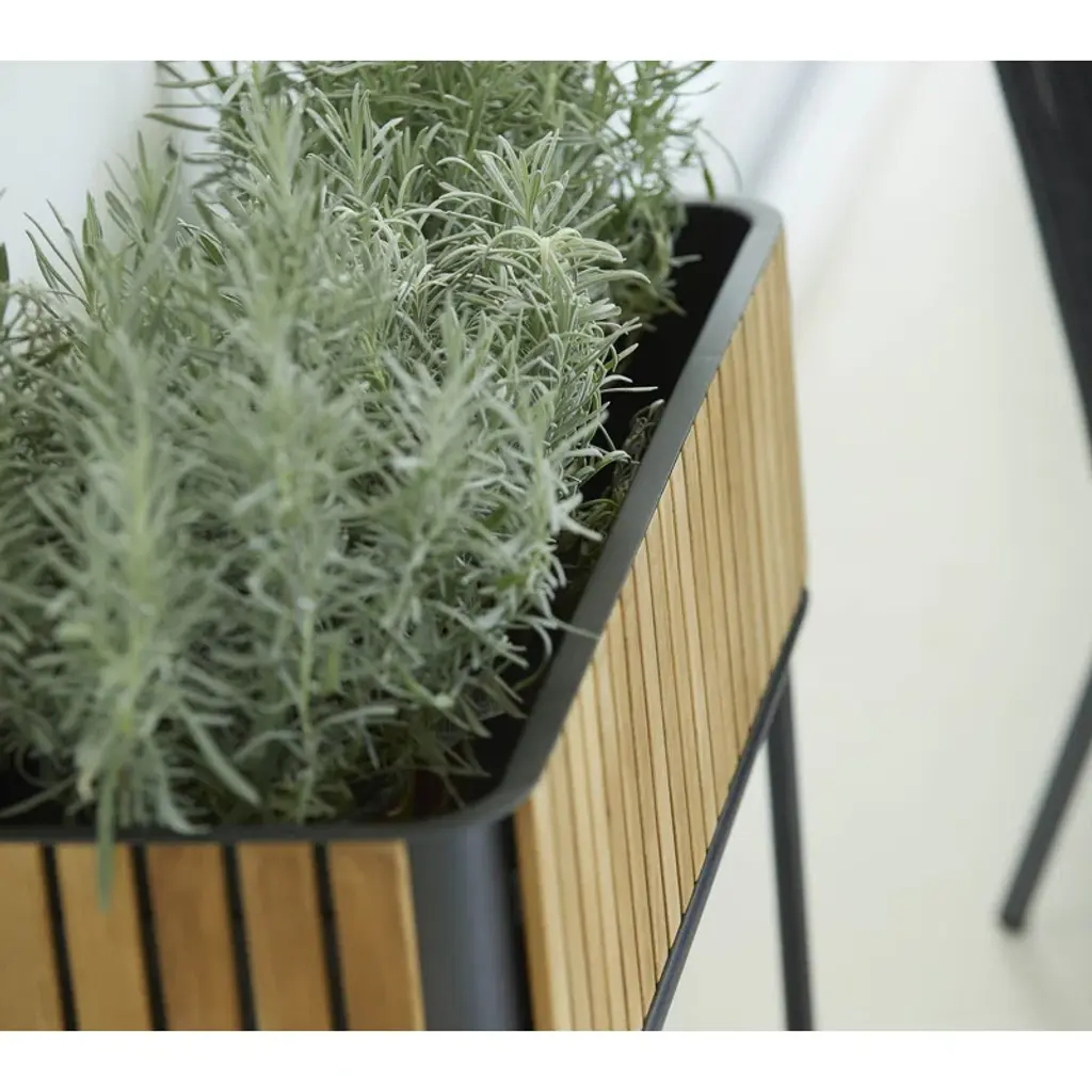 This Combine 3 ft x 1 ft Raised Garden is a modern planter with an exciting design and mix of materials. The warm certified teak and the streamlined powder-coated aluminum give a unique look that fits in most spaces. Cane-line teak is approved and cultivated according to the SVLK certification system. Plant your favorite herbs, flowers, or trees, and add a green spot to your outdoor place. The powder-coated aluminum ensures a resistant surface to knocks and scratches.