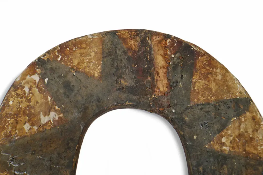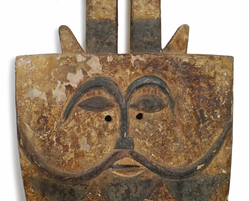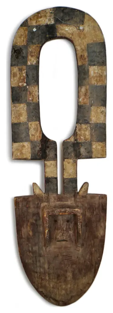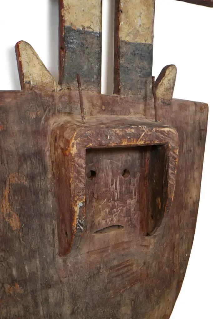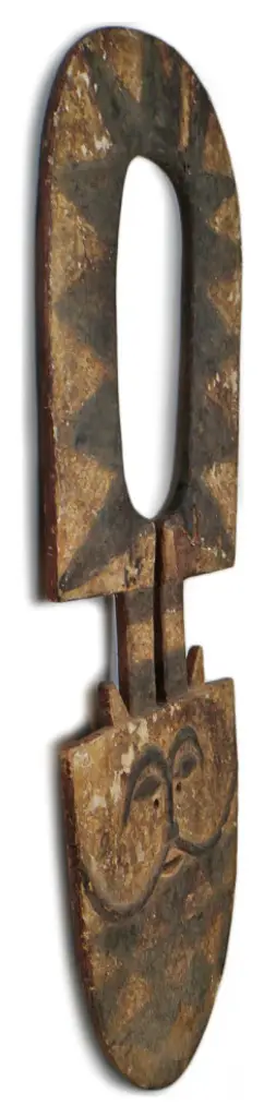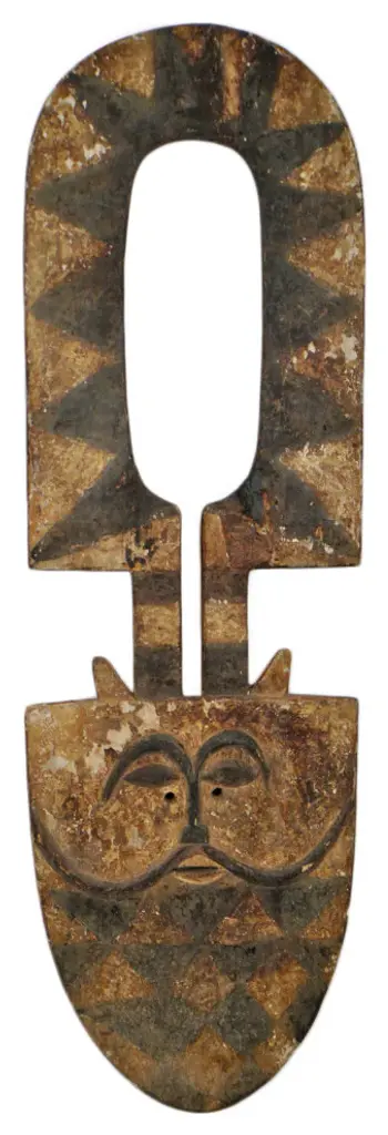 Consigned original Bedu plank mask from Ivory Coast. The Bedu association is thought to date back to the 1930''s. They were used during harvest festivals and for the purpose of riding out the village of evil. The large attractive, abstract masks can be made as high as eight feet and weigh as much as one hundred pounds. They are affiliated with use of the elders among the sub group of the Gurensi people. This strong Bedu mask makes a beautiful design statement and is ready to hang in your collection.Condition: Good, with signs of age and useOrigin: Ivory CoastEra: Mid 1900''s