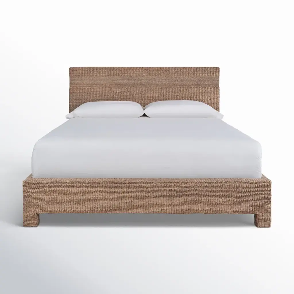 The Seaton Woven Bed is a striking bedroom statement crafted with woven water hyacinth accentuated by a delicate abaca rope band stripe Assembly Required? Yes Please note: Mattress and bedding not included with purchase